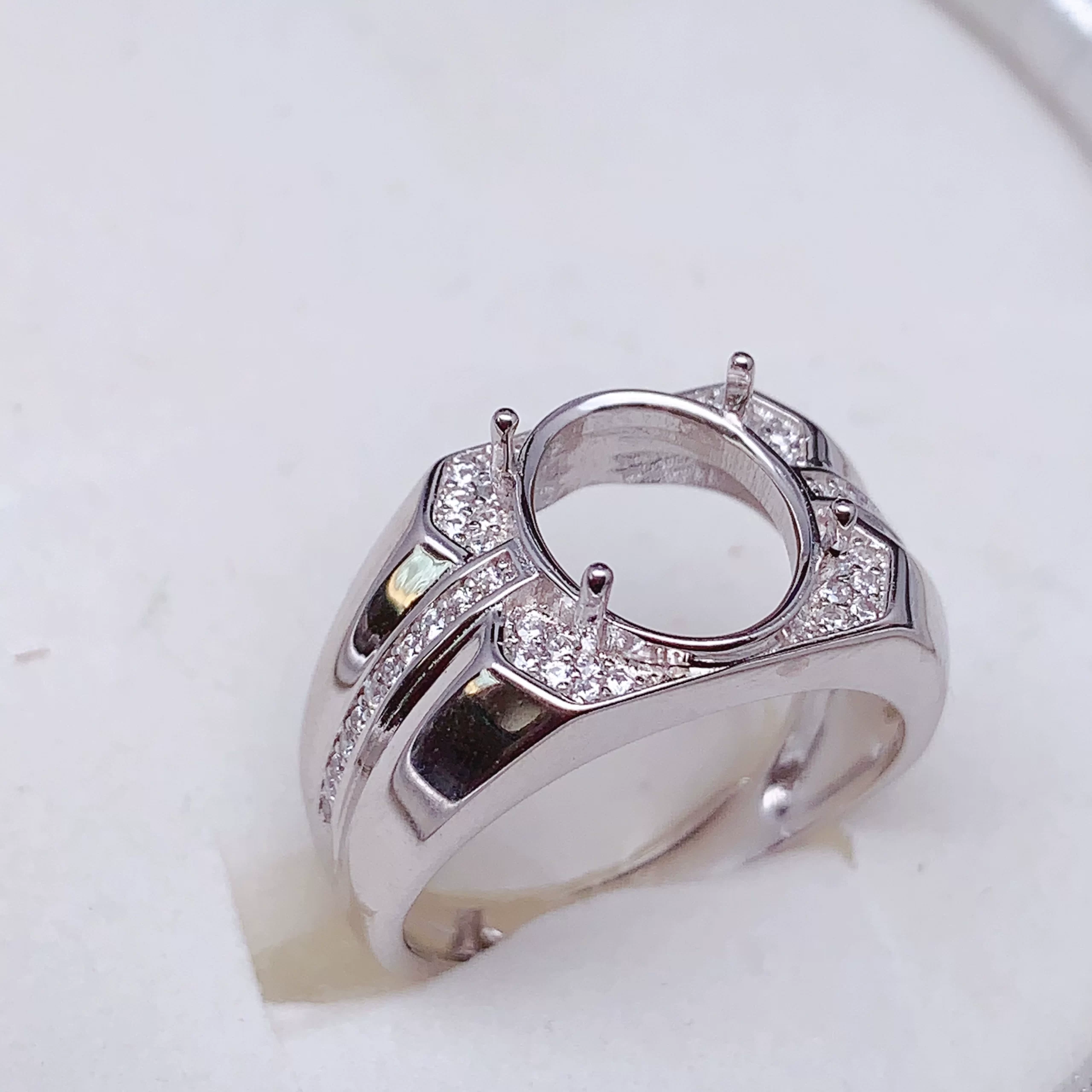| nameOriginal | Seiko S925 sterling silver men's ring empty support plate ring opening design inlay accessories internet celebrity same style oval 10*12 |