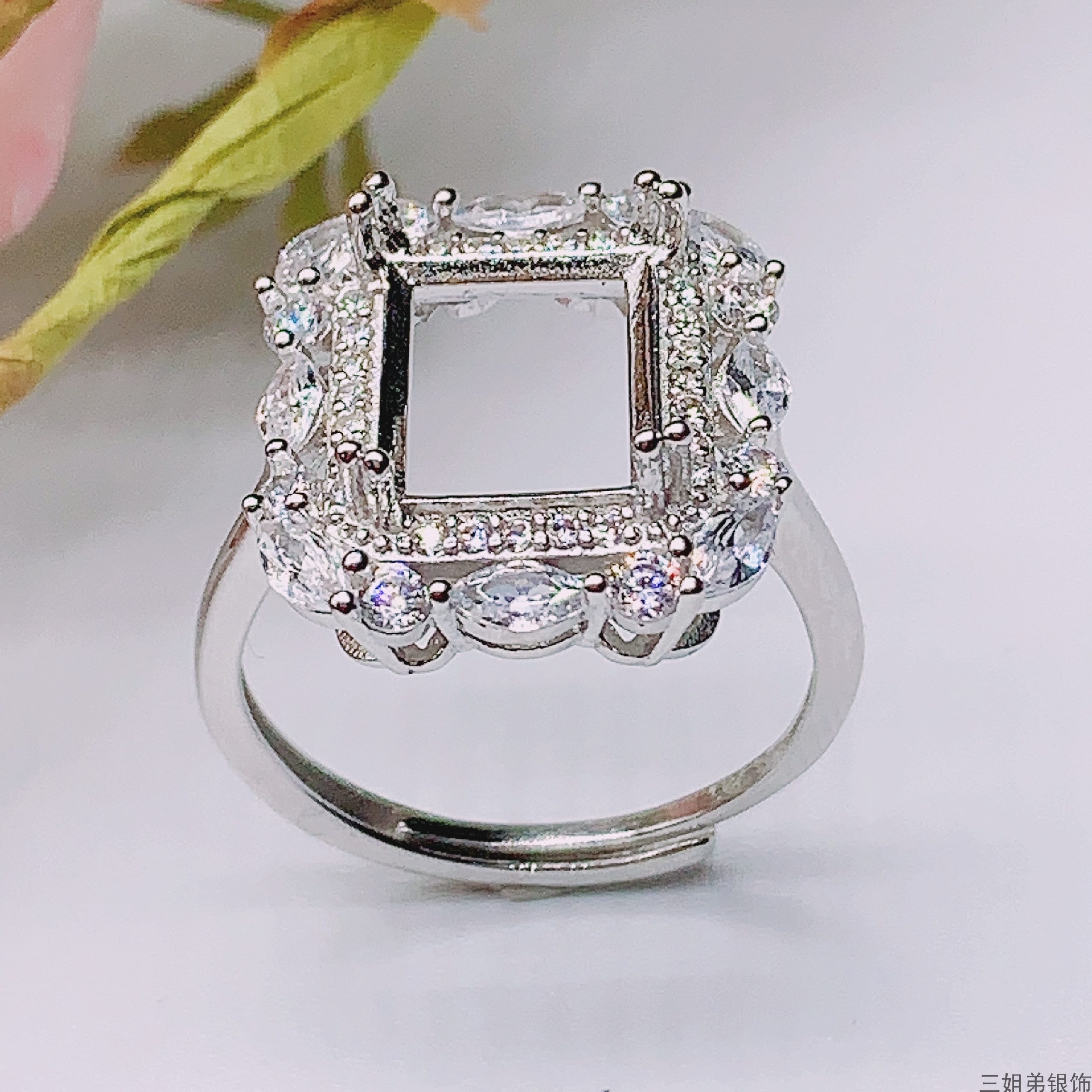 Seiko S925 sterling silver ring empty support luxury versatile live ring design inlaid with square 8*10mm crystal topaz