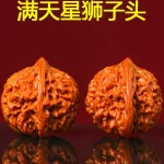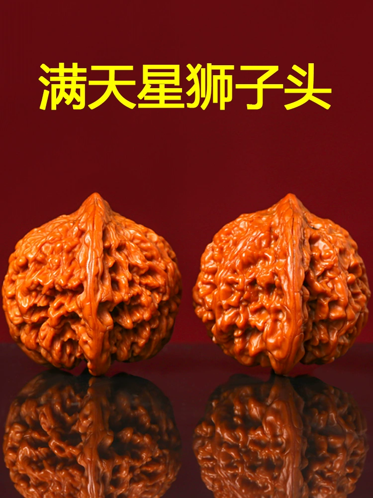 Selected Wenwan hemp walnut original color machine brushed patina starry lion head hand plate handle piece dense red leather Baihuashan