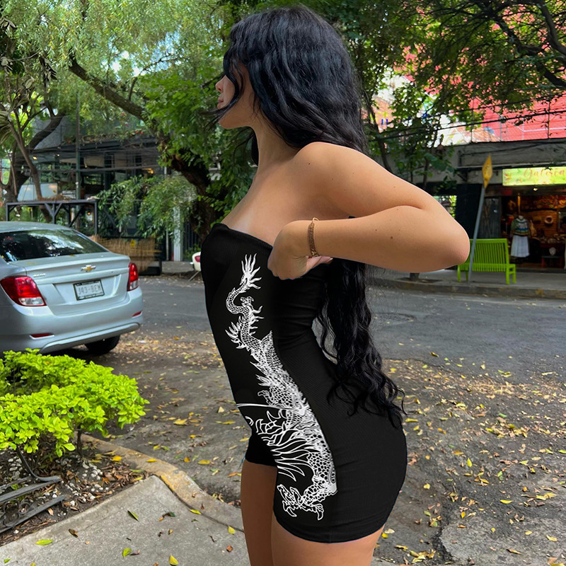 | nameOriginal | Self-built station Europe and the United States cross-border personality dragon print color contrast slim slim sports tube top jumpsuit shorts 2024 |