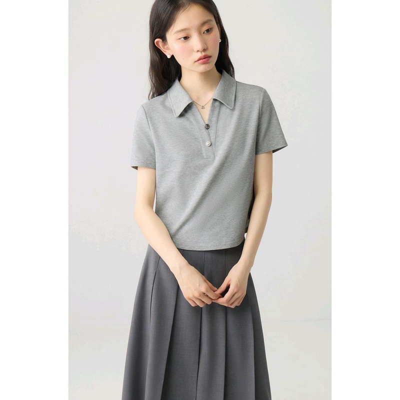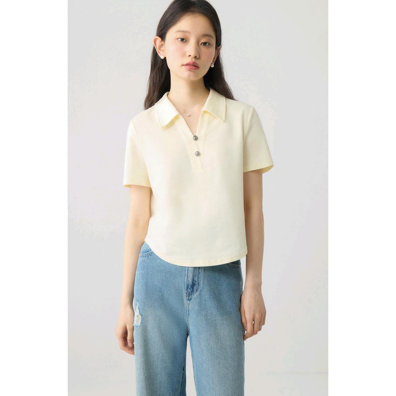 | nameOriginal | Self-coincidence Small Shoulder Cool Polo Collar Short-sleeved T-shirt Women's 2024 Summer New Irregular Design Top |