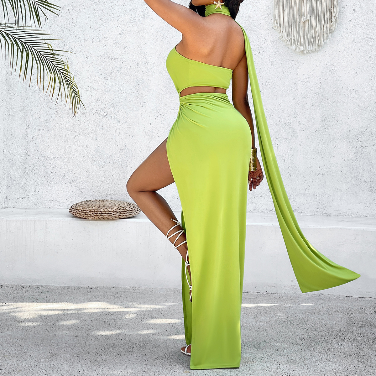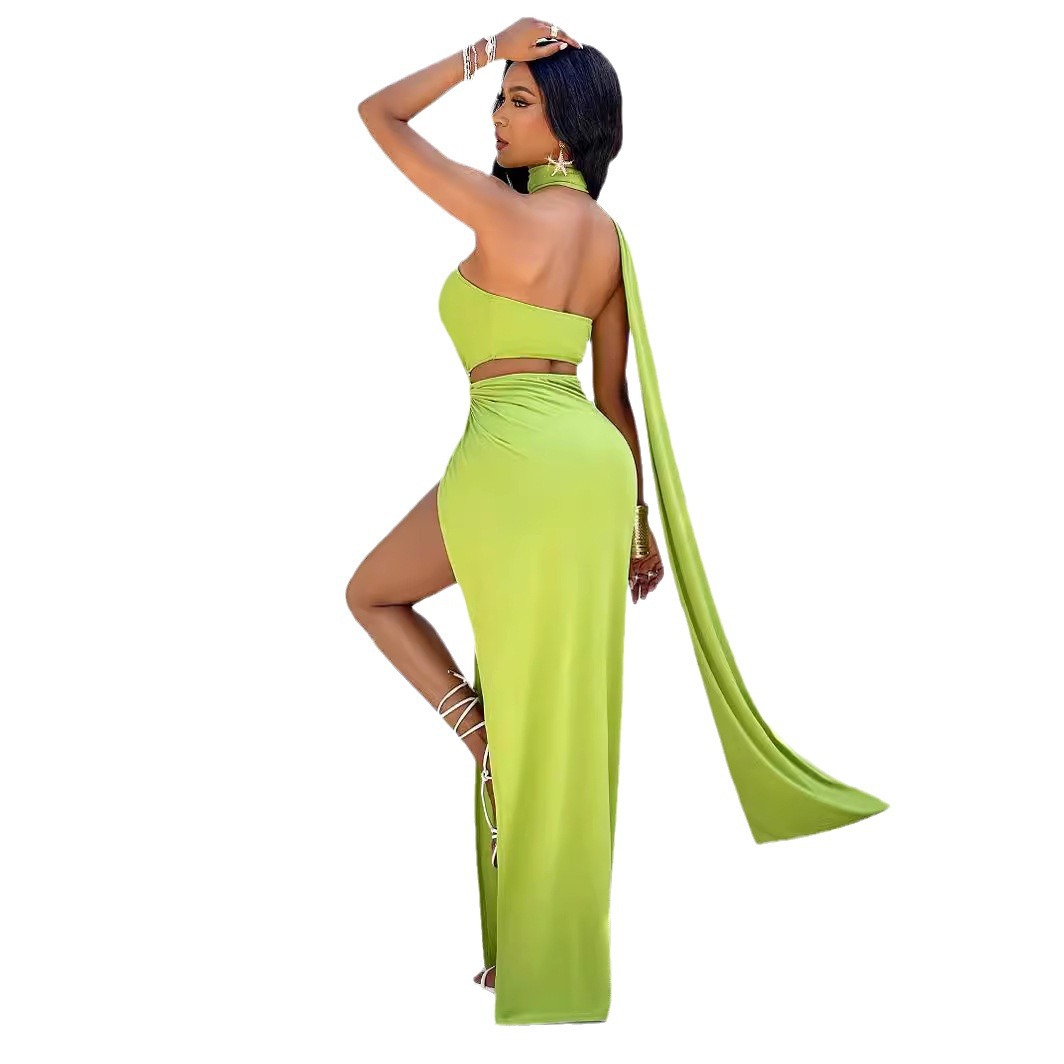 | nameOriginal | Self-designed and shot European and American new women's clothing summer hot sale cross-border solid color casual halter ribbon dress |