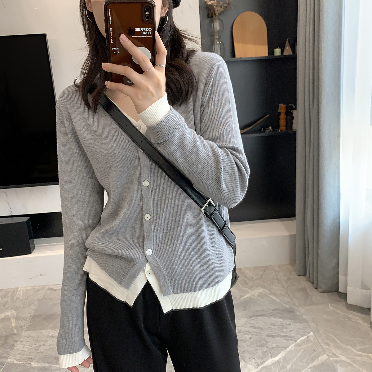 | nameOriginal | Self-retaining Slim Fake Two-piece 2022 Autumn New Collar-breasted Pullover Slim-fit Commuter Sweater |