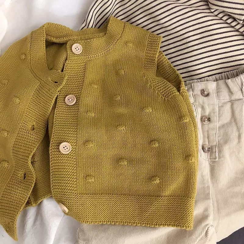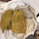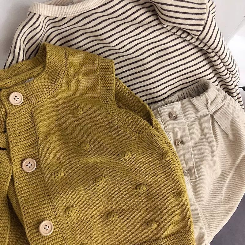 Self-retention! Color texture small advanced ~ South Korea children’s cotton and linen striped shirt top loose knitted vest fashion