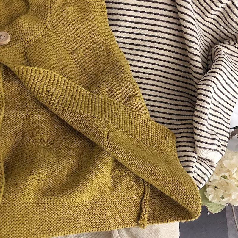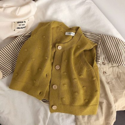 Self-retention! Color texture small advanced ~ South Korea children’s cotton and linen striped shirt top loose knitted vest fashion