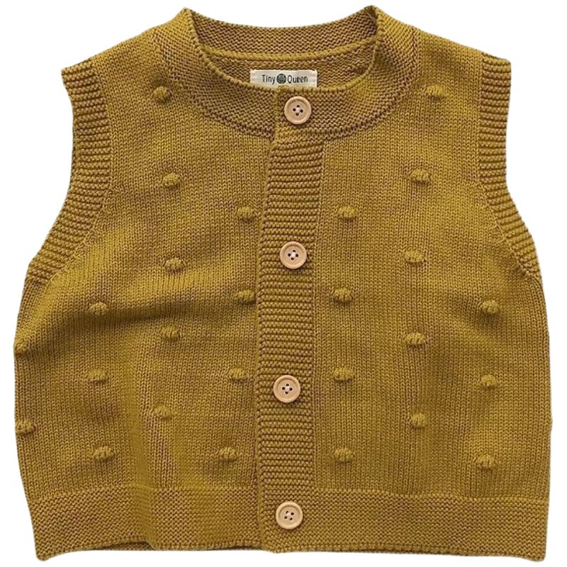 Self-retention! Color texture small advanced ~ South Korea children's cotton and linen striped shirt top loose knitted vest fashion