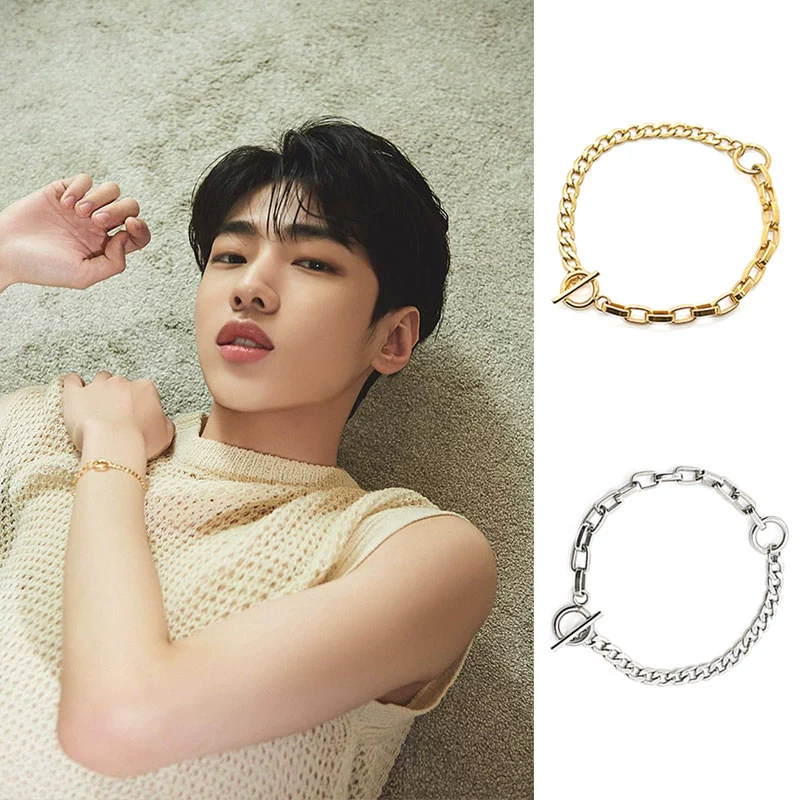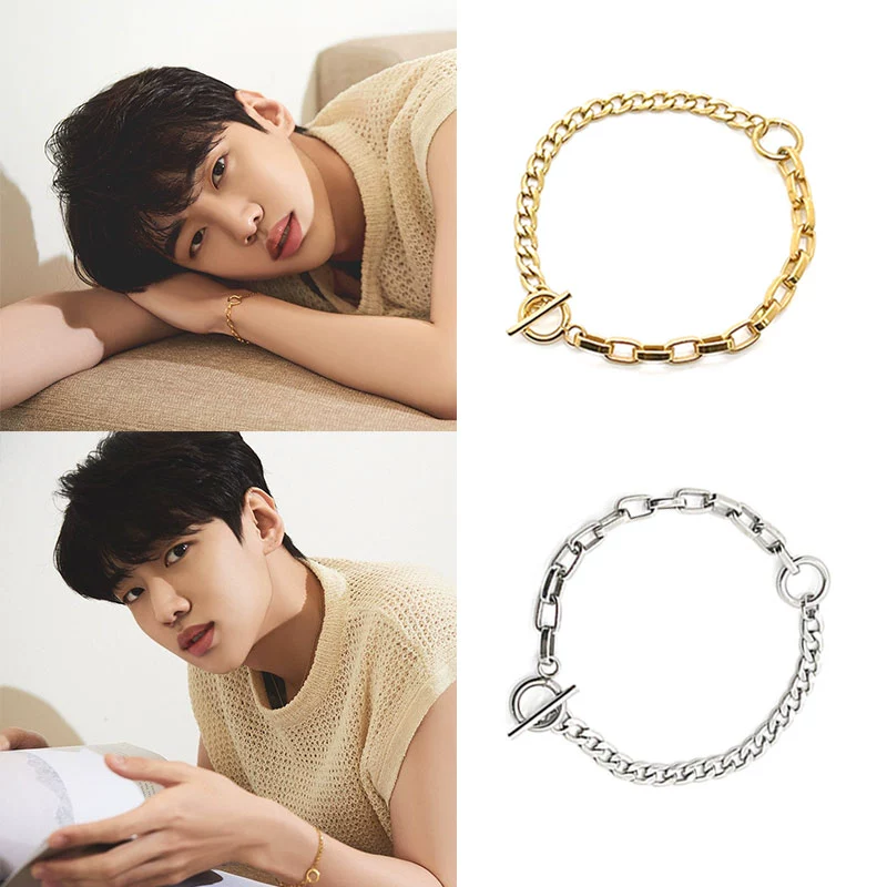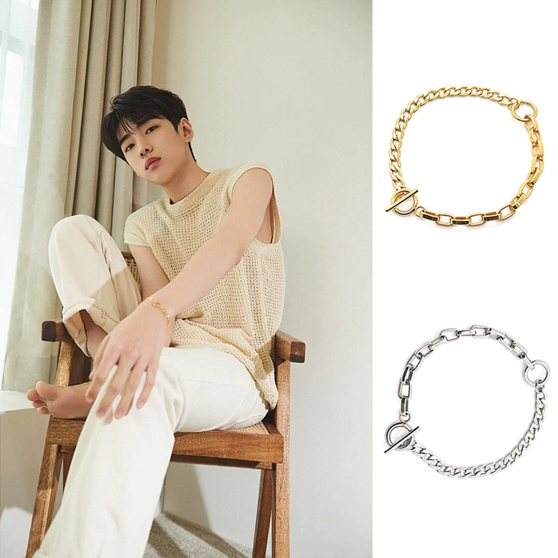 Semantic error Channi Park Jae-chan's same style gold and steel ring buckle stitching bracelet is fashionable, youthful and versatile, trendy and cool Korean drama