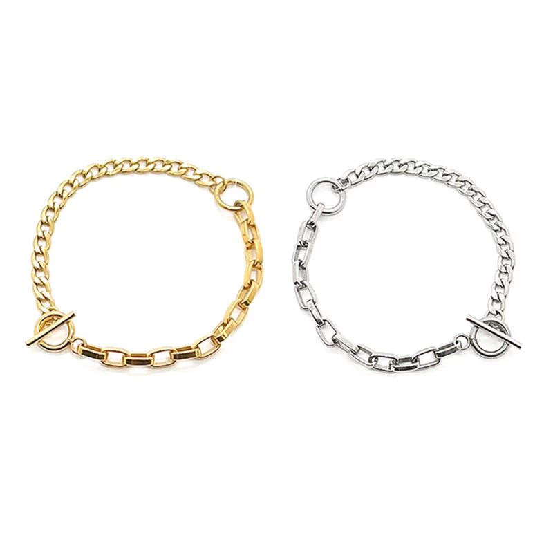 Semantic error Channi Park Jae-chan’s same style gold and steel ring buckle stitching bracelet is fashionable, youthful and versatile, trendy and cool Korean drama