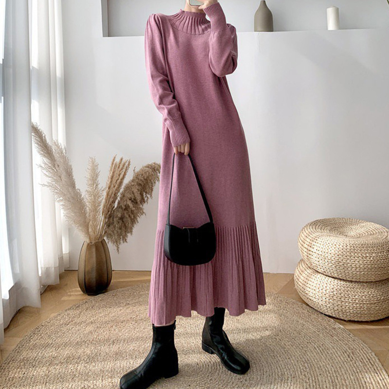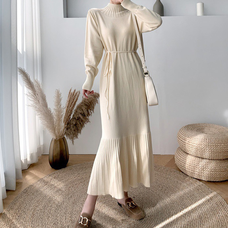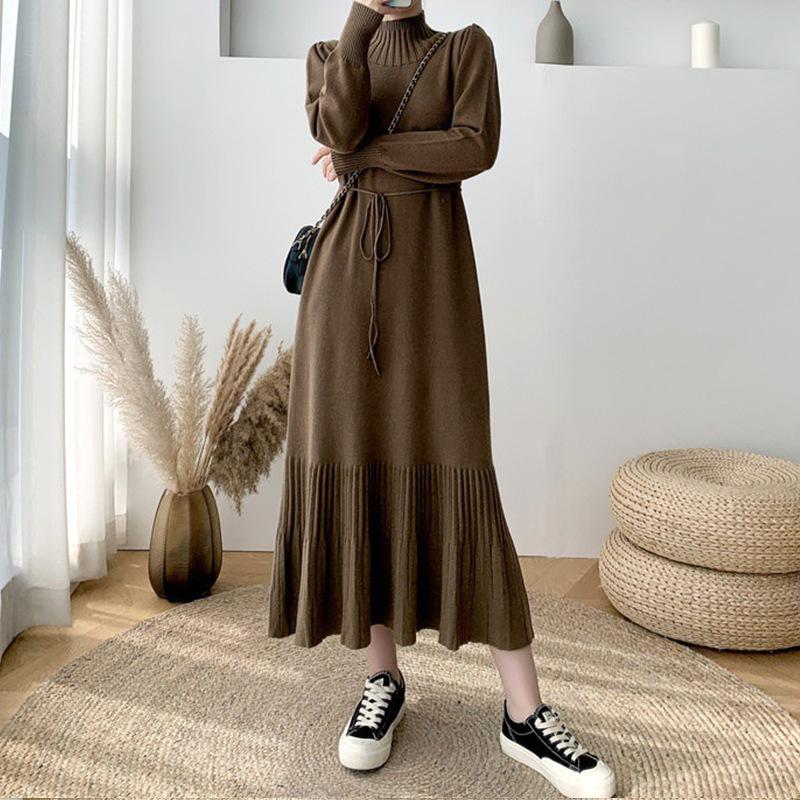 | nameOriginal | Semi-high collar bottoming sweater dress women autumn and winter new cross-border foreign trade long elegant temperament lace-up knitted dress |