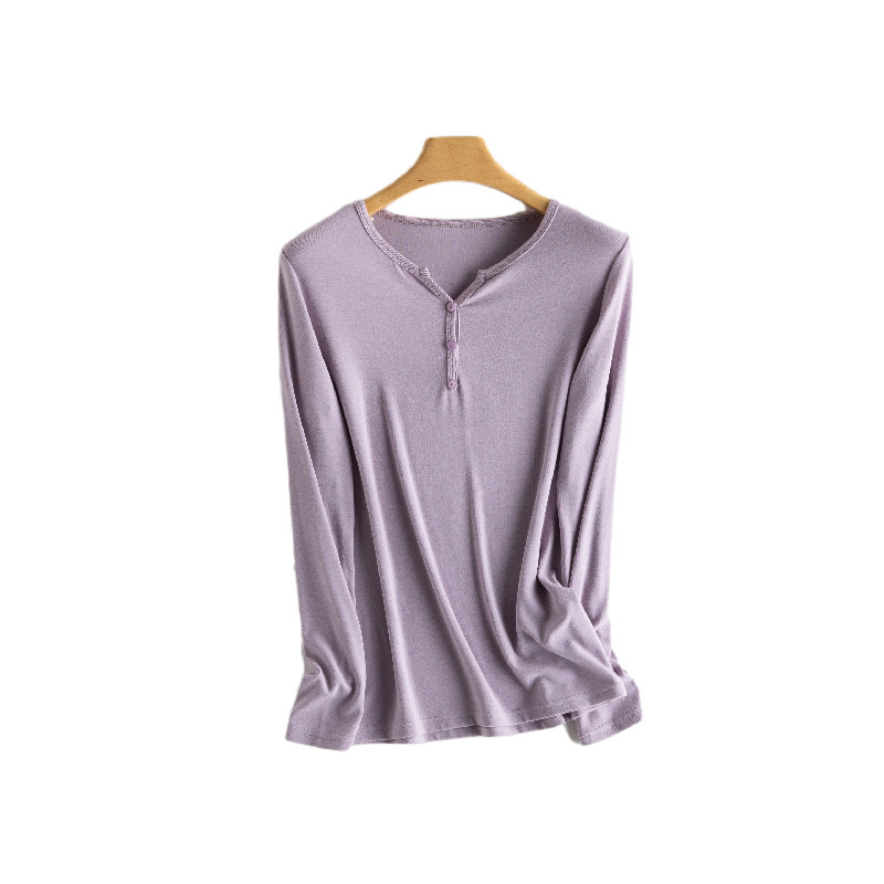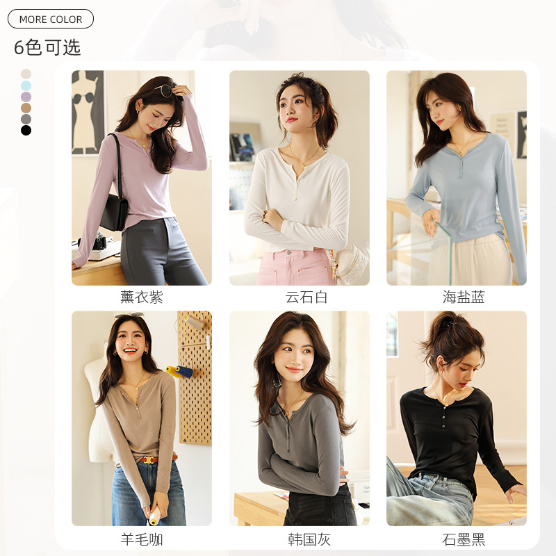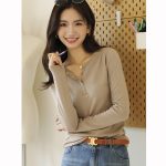 Semi-Open Collar Knitted Base Shirt Slim-Fit Slimming Inner Long-Sleeved T-Shirt Stylish Outer Wearing Top Trendy V-Neck Small Shirt T-Shirt