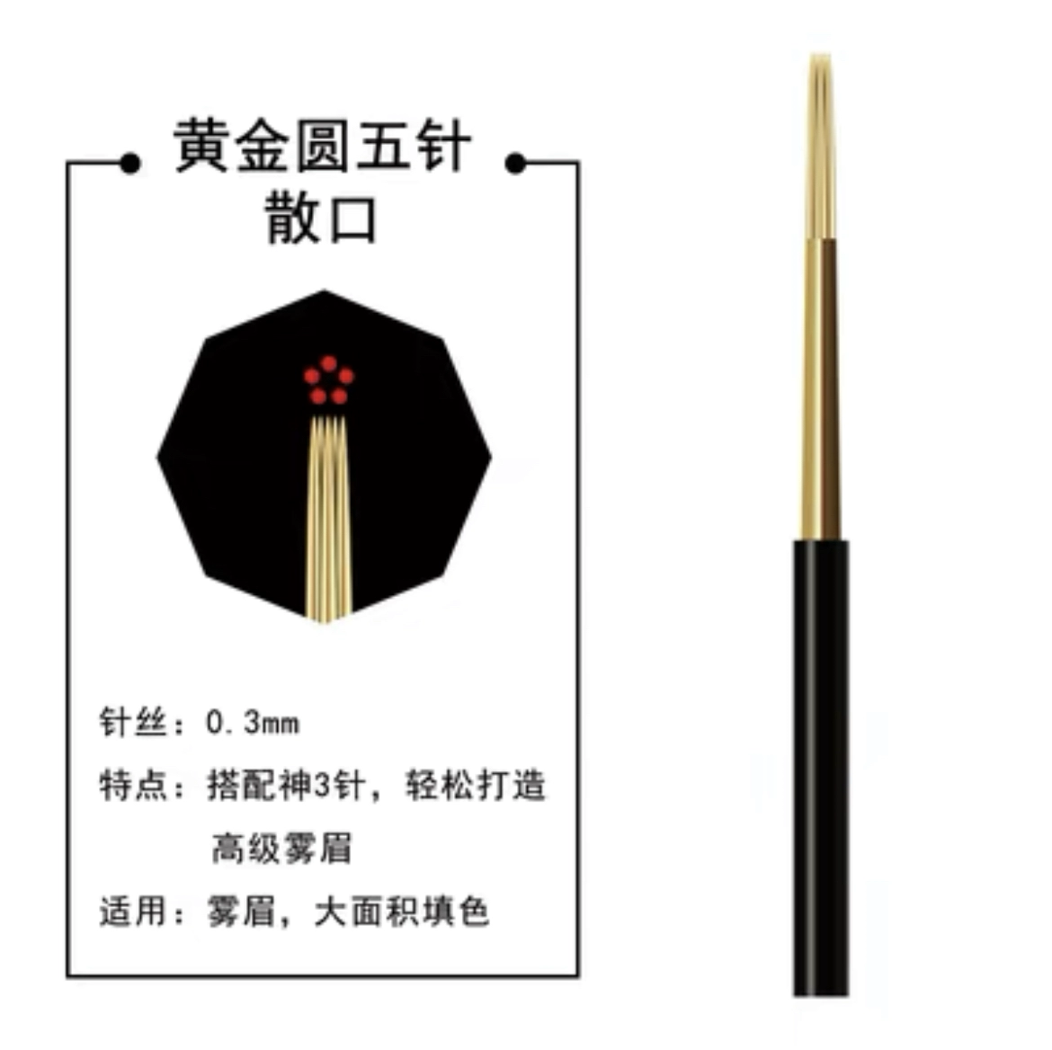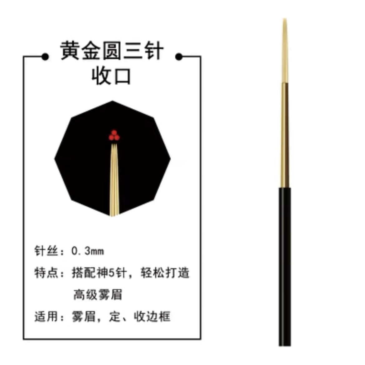 | nameOriginal | Semi-permanent tattoo needle piece, fogging needle, three small golden needles, closing needle, three gold needles, three round needles, five needles, three round needles, five loose needles |