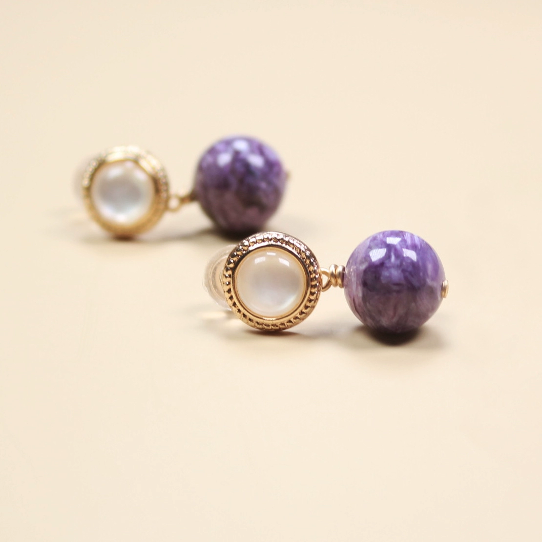Semi-precious mother-of-pearl gold-plated natural amethyst