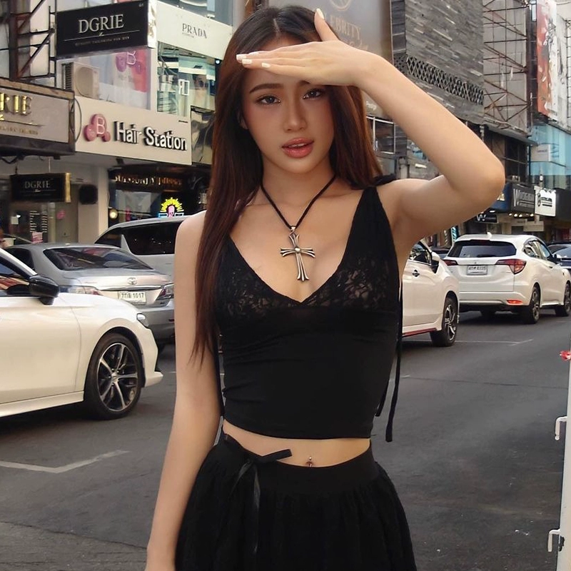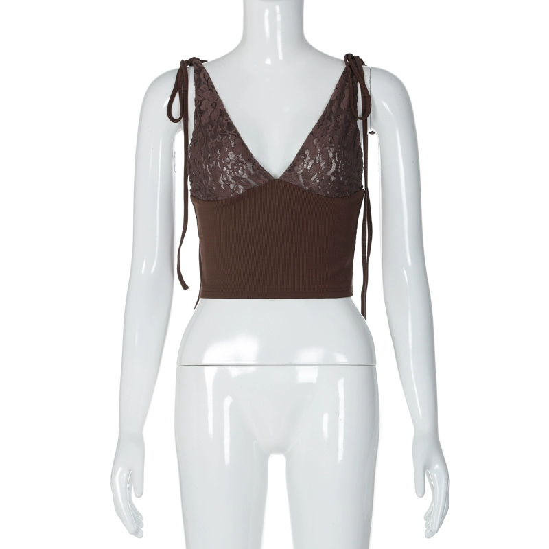 | nameOriginal | Semi-sheer V-neck slim-fitting lace-up crop top camisole |