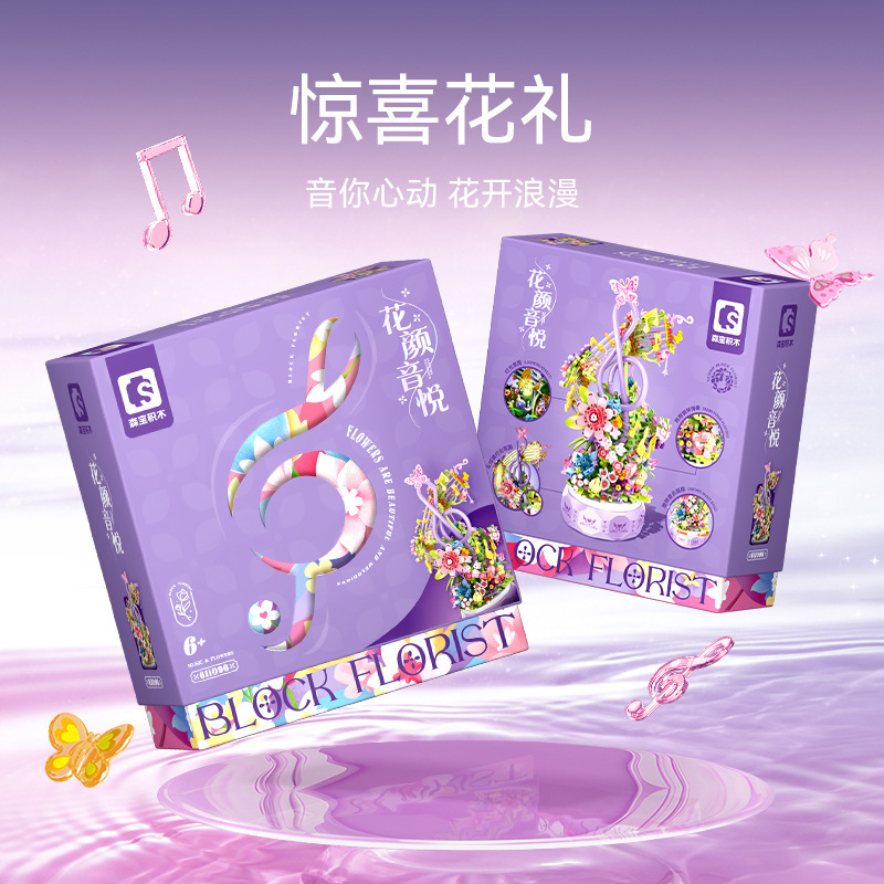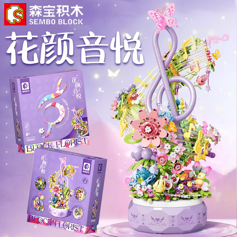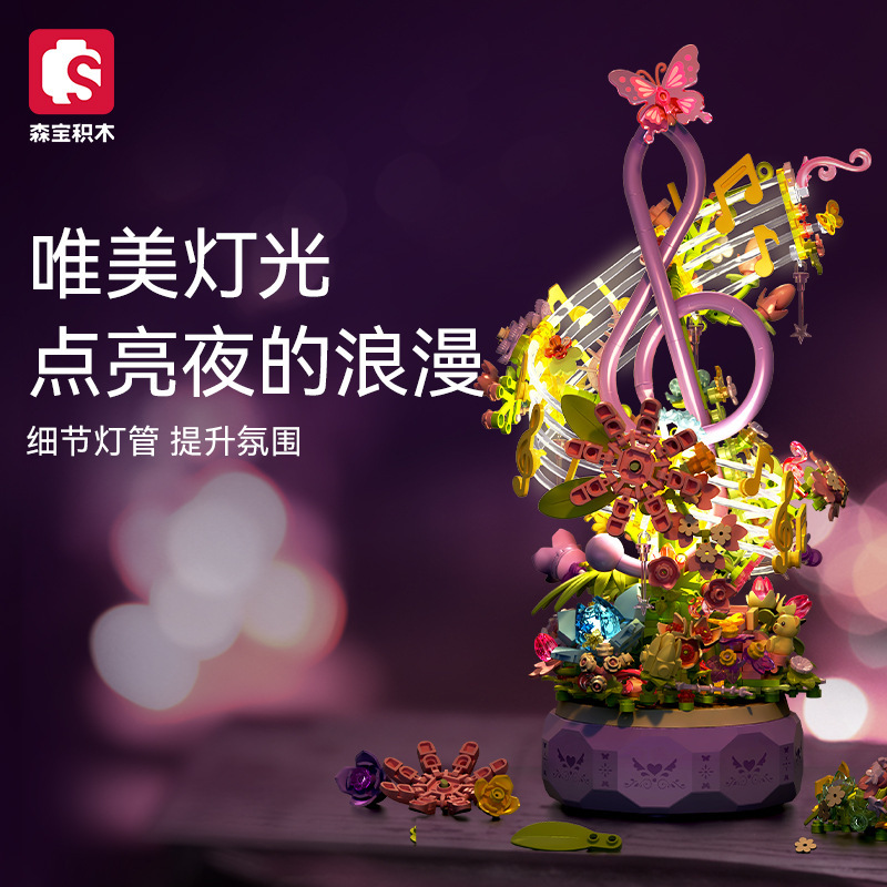 Senbao Building Blocks 611096 Flower Yan Yinyue Light Music Box Assembled Building Blocks Hand-made Model Toy Gift for Girls