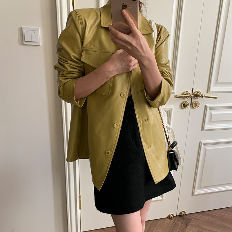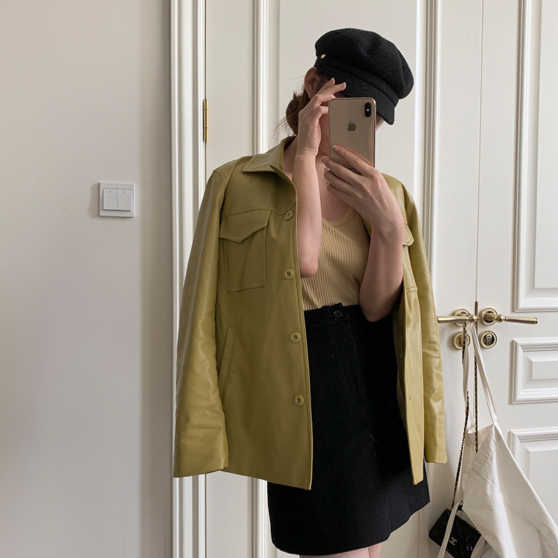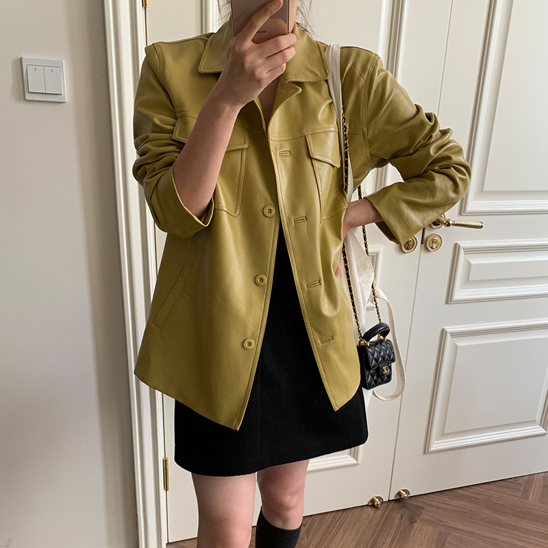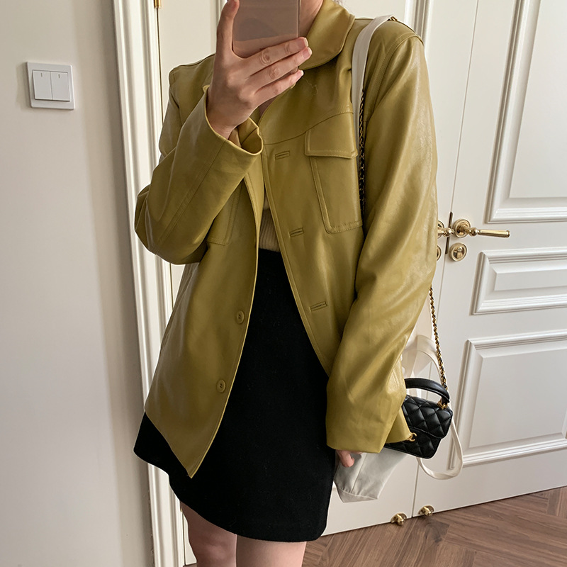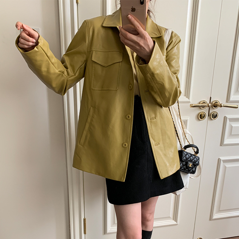 [Send in seconds] Autumn South Korea Dongdaemun New elegant casual high-grade leather jacket for women