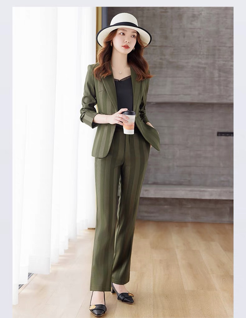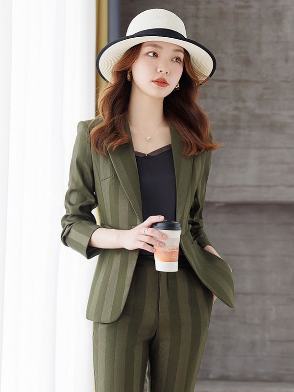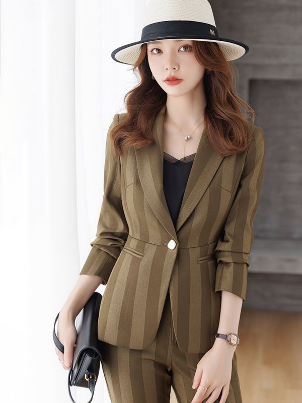 Senior Professional suit women’s fashionable striped elegant casual suit jacket Business interview formal wear skinny work clothes