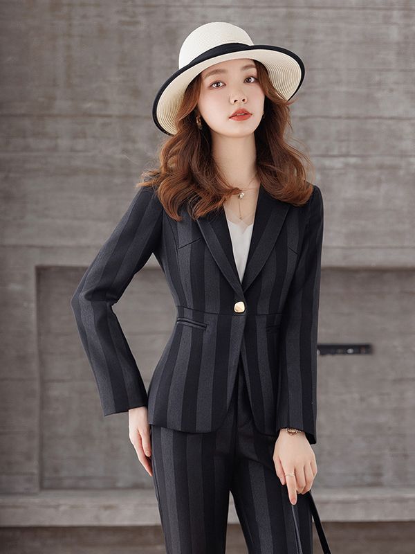 Senior Professional suit women's fashionable striped elegant casual suit jacket Business interview formal wear skinny work clothes