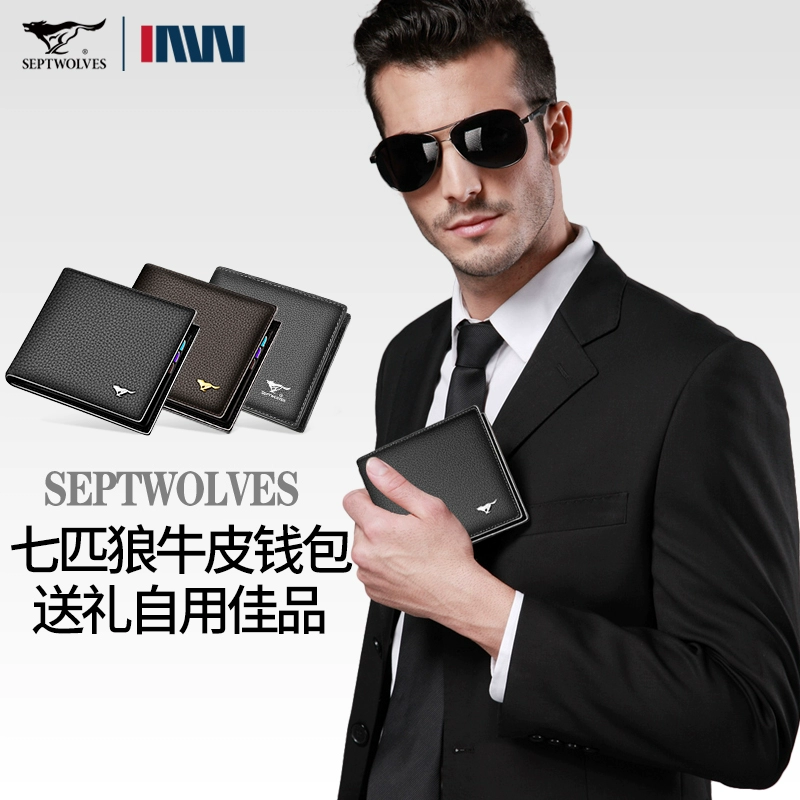 Septwolves men's genuine leather short wallet 2024 new simple wallet first layer cowhide card bag youth wallet trend