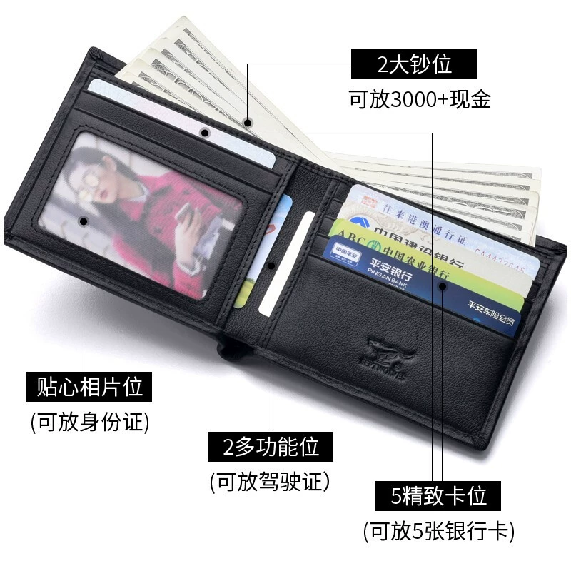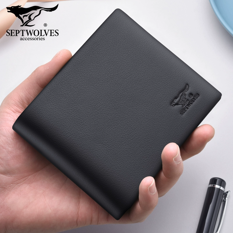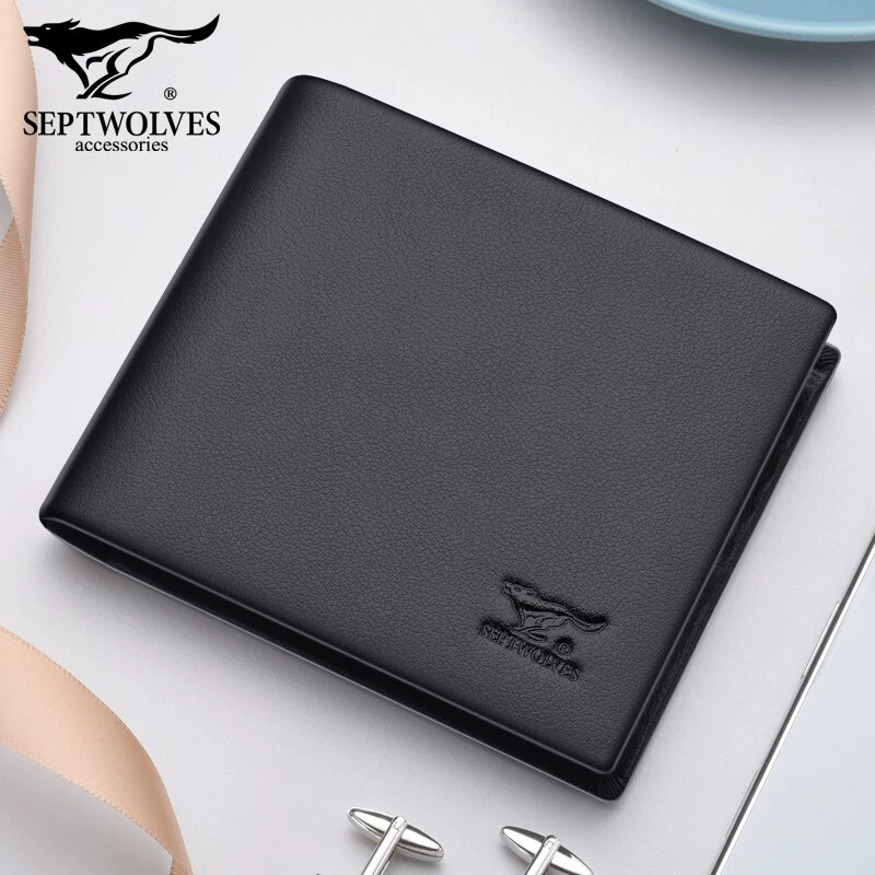 | nameOriginal | Septwolves Men's Wallet Full Genuine Leather Wallet Edged No Stitches Pure Cow Leather Clip Brand Ticket Holder Soft Leather Can Driving License |