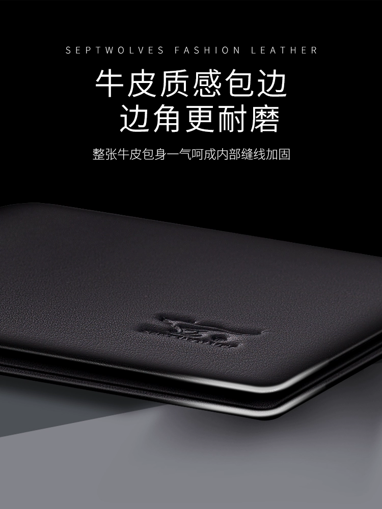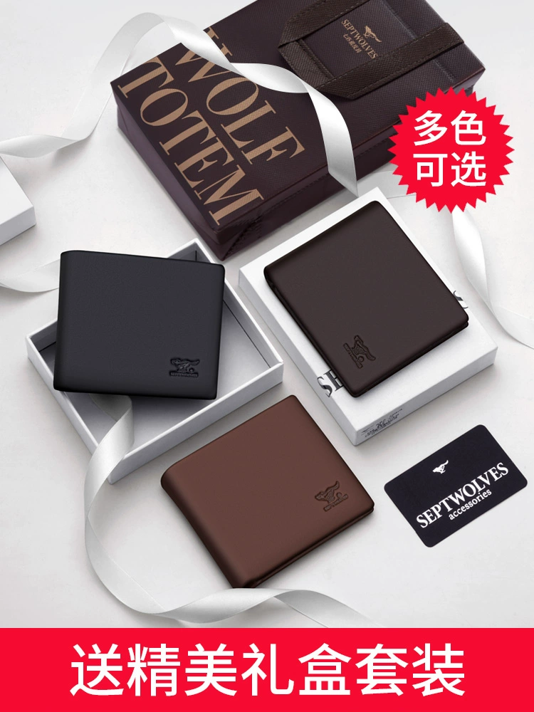 Septwolves Men's Wallet Men's Short Genuine Leather Wallet Gift Box New Youth Student Men's Wallet Trendy Brand