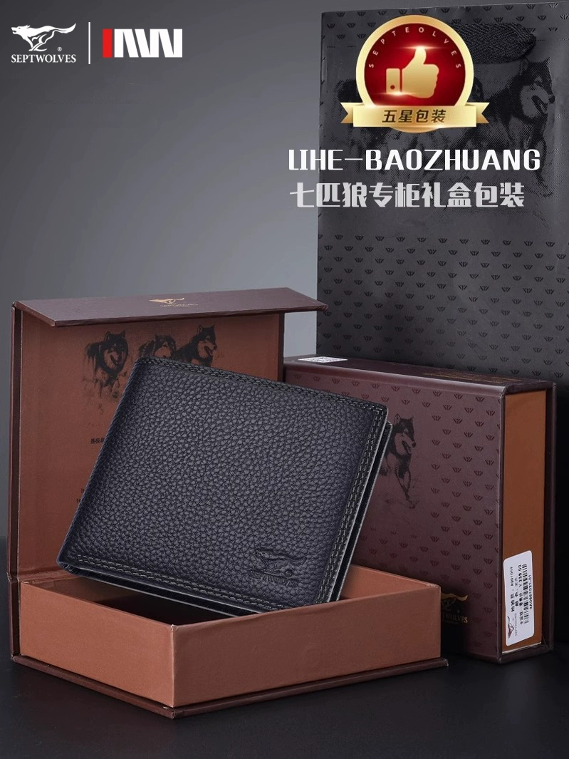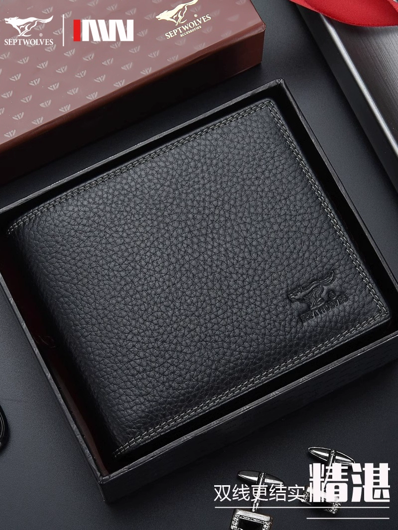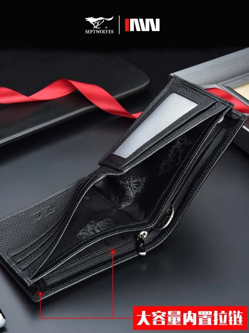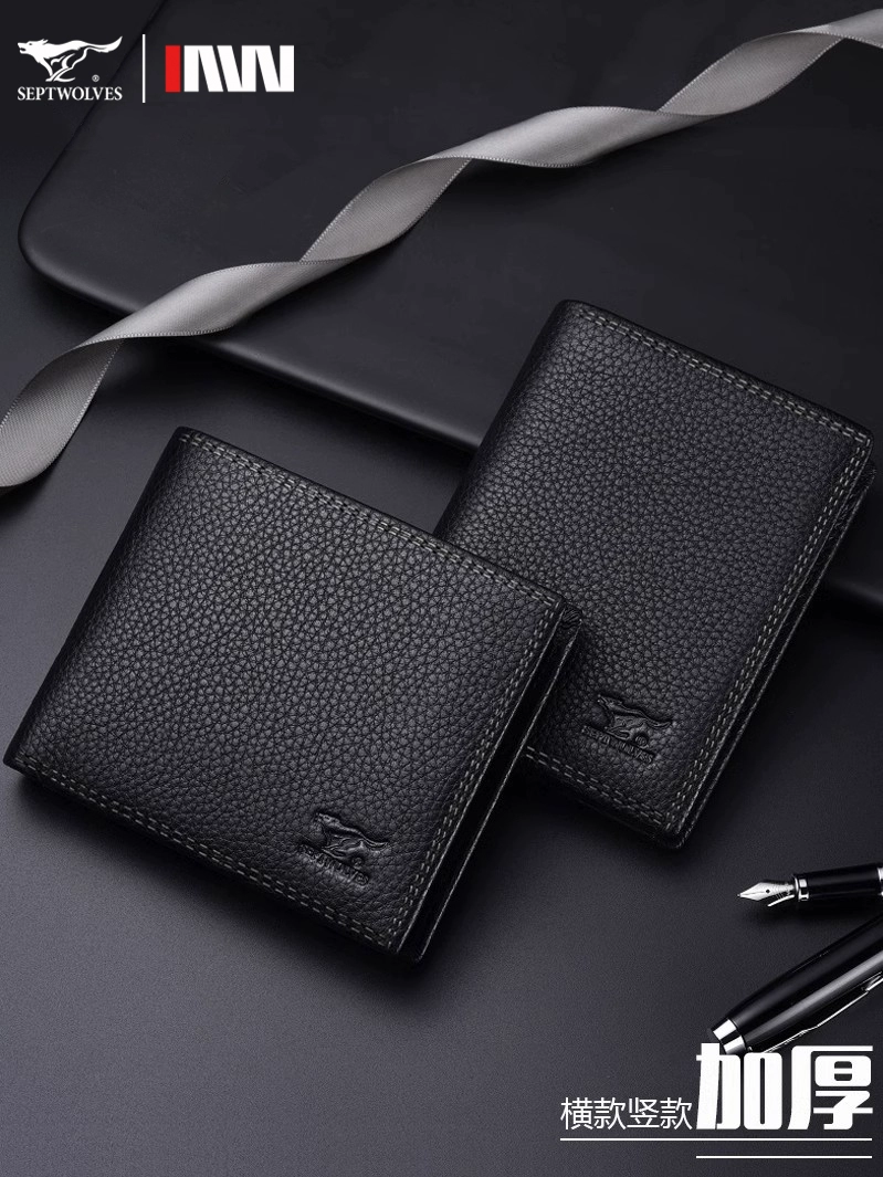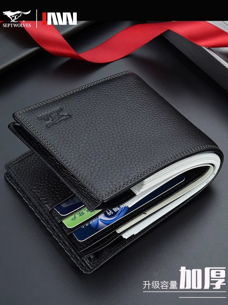 Septwolves men’s wallet thickened short large capacity genuine leather wallet widened 2024 new style enlarged soft cowhide folding