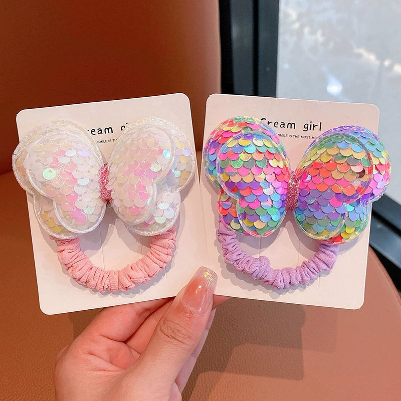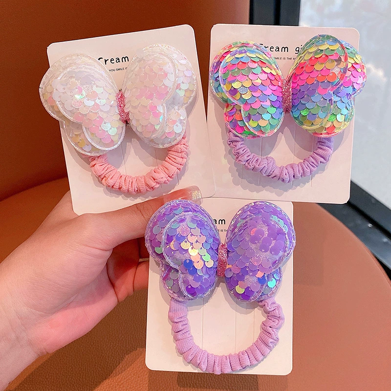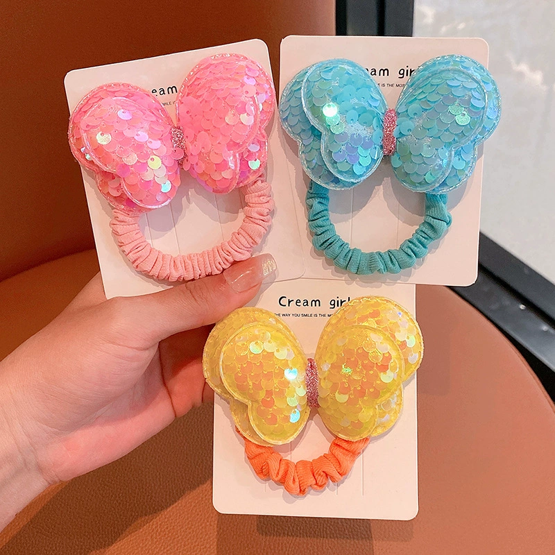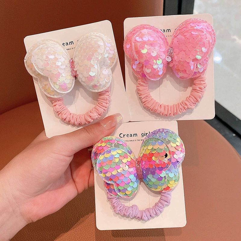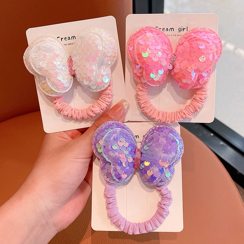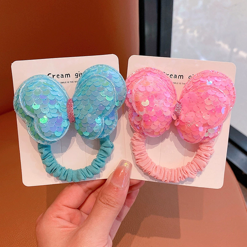 | nameOriginal | Sequin butterfly hair rope children's hair ring does not hurt hair bow high ponytail hair rope girl rubber band headwear |
