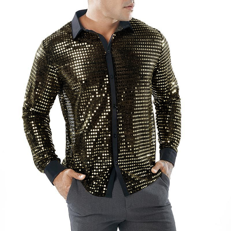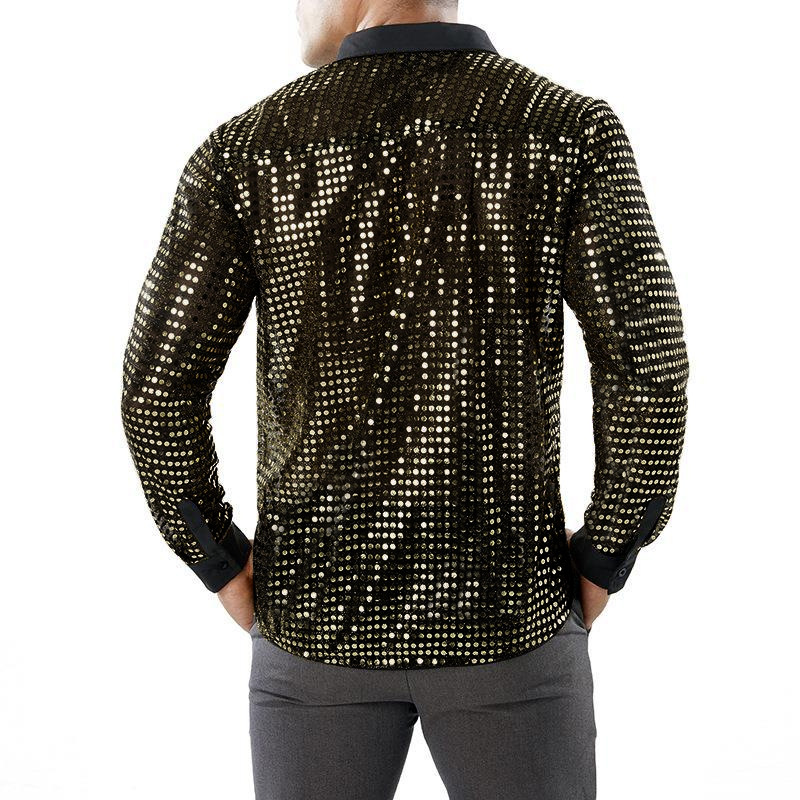| nameOriginal | Sequin button-up shirt cross-border foreign trade 70s disco party cosplay clothing nightclub clothing |