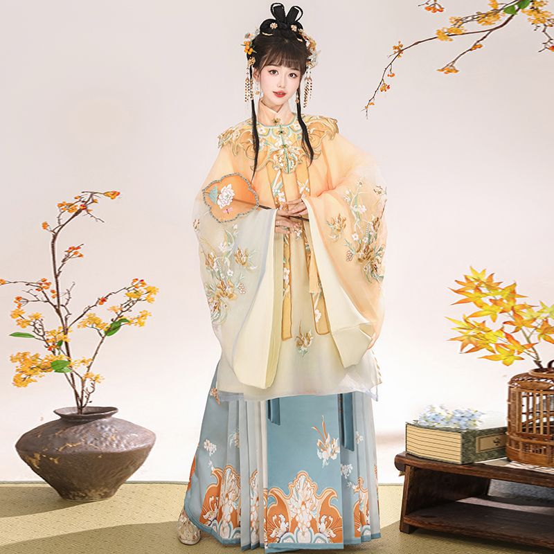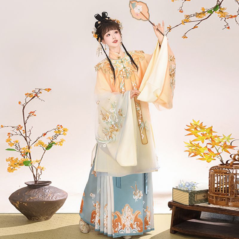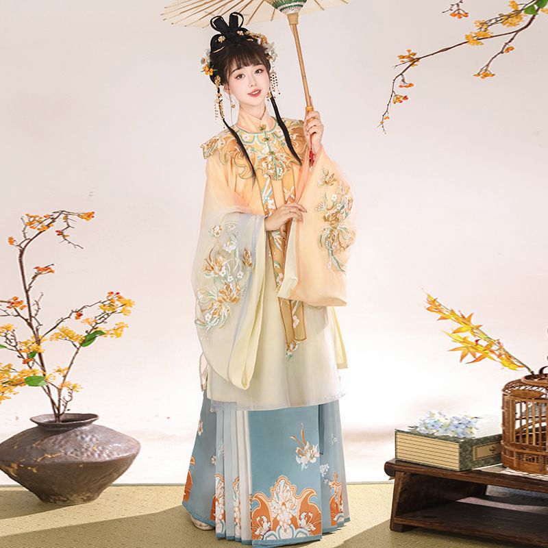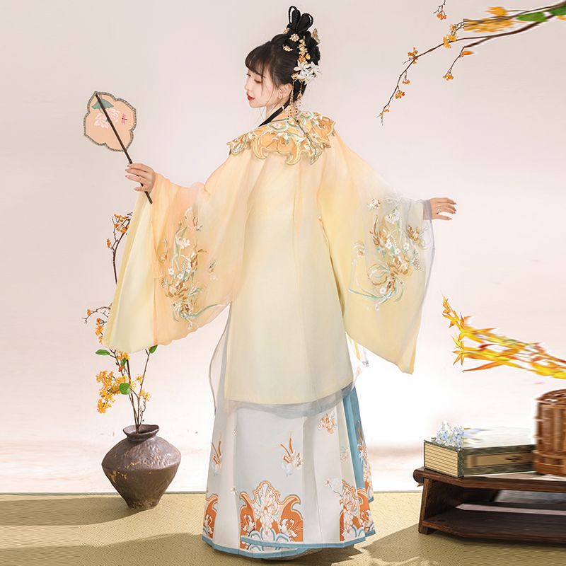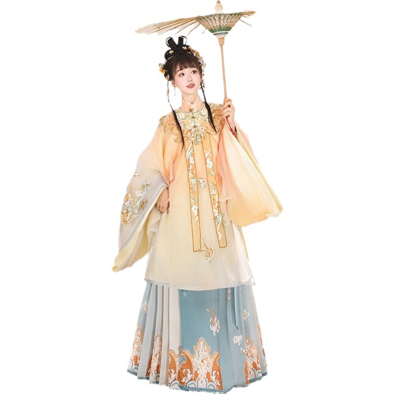 | nameOriginal | Sesame Pavilion [Cloud Outer Mirror] Ming-made Adult Hanfu Women's Vertical Collar Slant Placket Long Shirt Heavy Industry Embroidered Cloud Shoulder Horse Face Skirt |