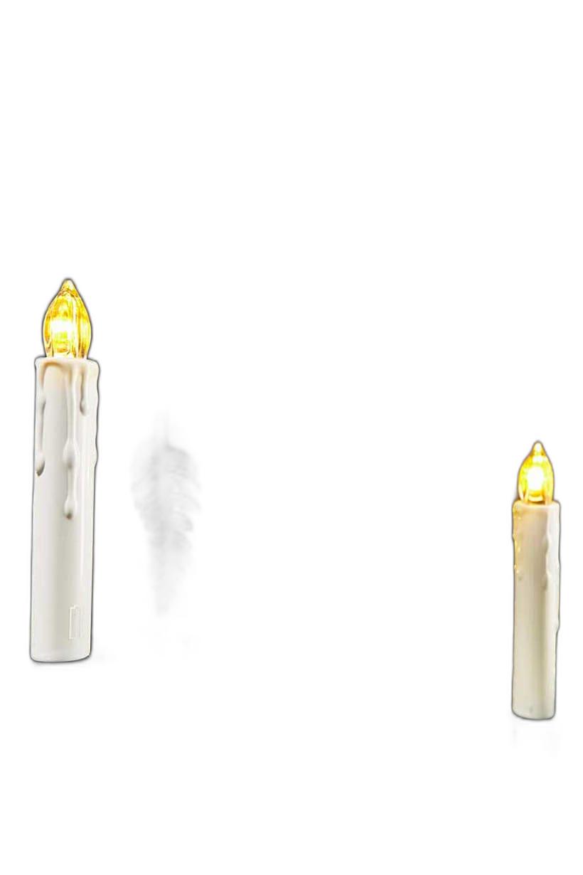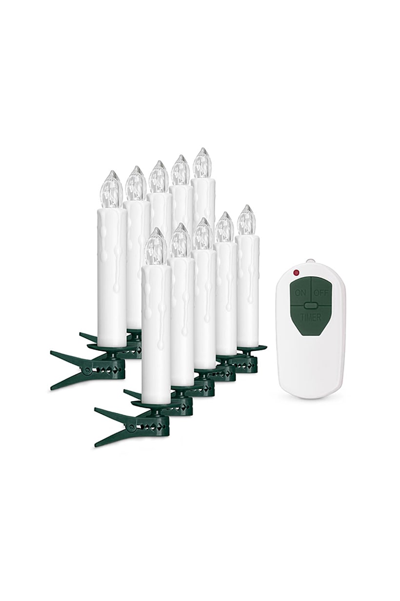 Set of 10 LED candles for Christmas tree in cream and green color.