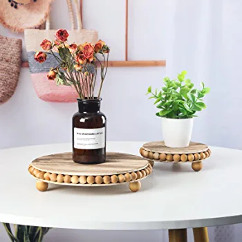 This versatile set of wooden risers is perfect for adding a touch of charm to any space. Whether you’re looking to spruce up your kitchen, living room, or dining room, these risers can be used to display a variety of items, from candles to cupcakes. With their compact size, they’re easy to store and can be used in a variety of settings. The round base design adds a touch of whimsy, while the distressed brown color creates a warm and rustic atmosphere. Made from high-quality fortune paulownia wood, these risers are sturdy and durable, ensuring long-term use. Each package contains two wooden farmhouse risers, providing ample opportunity for daily use and replacement. Experience the joy of decorating your home with this charming set of wooden risers.