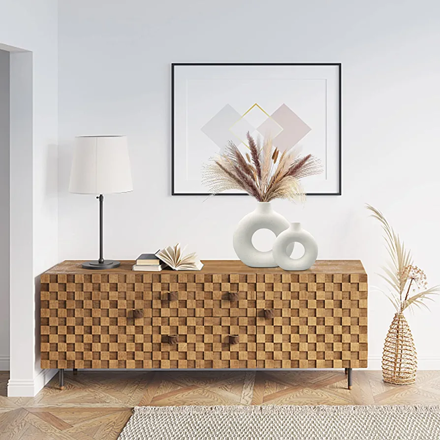 This ceramic vase boasts a unique, patented design that sets it apart from other home decor options. Its unglazed frosted texture and hollow center create a modern geometric aesthetic that complements any interior design style. Measuring 7.08”*6.7”*1.3”, this handmade vase is perfect for displaying dried flowers or pampas grass in your living room, bedroom, dining table, bathroom, office, bookshelf, mantelpiece, and more. Its rustic charm makes it an ideal gift for weddings, housewarmings, and holidays. Crafted with bisque, the surface of this vase has a matte texture that adds to its artistic appeal. If you’re not satisfied with your purchase, our 100% customer service guarantee ensures that we’ll provide you with a satisfactory solution.