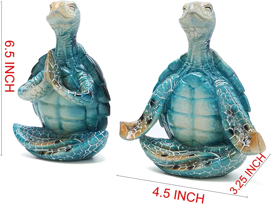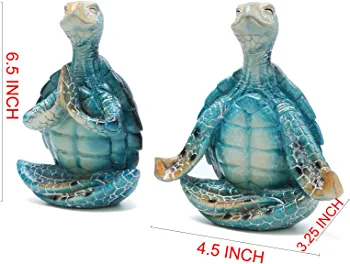 Introducing our eco-friendly Sea Turtle Yoga Decorations made from high-quality resin. These decorations are perfect for enhancing the ambiance of your home and garden. The design of the Sea Turtle Decorations is inspired by yoga postures that have been used for centuries to improve physical, psychological, emotional, and spiritual abilities. You can place these decorations in your meditation room, living room, or office to help you relax and find inner peace. The blue color of the decorations will transport you to the ocean, creating a calming and peaceful atmosphere.