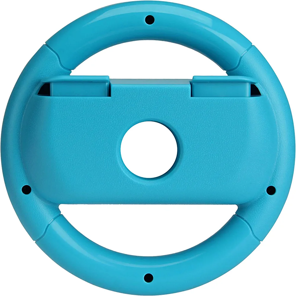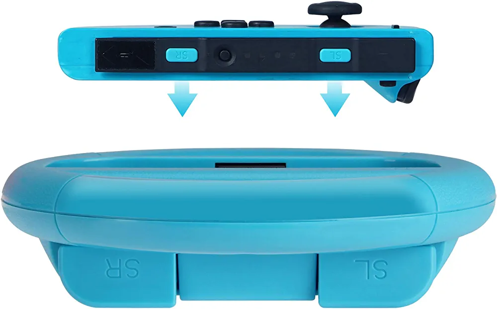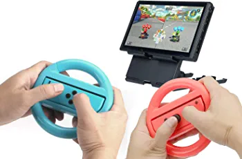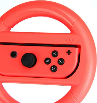 | descriptionOriginal | AmazonBasics Steering Wheel for Nintendo Switch – Blue/Red (2 Pack) Make racing games more fun with the AmazonBasics Steering Wheel for Nintendo Switch – Blue/Red (2 Pack). The steering wheel creates an easier playing experience—perfect for younger or new-to-the-game players. To use, simply slide a Joy-con controller into the accessory, and get ready for exciting virtual-racing action. The set includes two wheels—one for the left controller and one for the right, which allow for competing against a friend (aka most esteemed rival). Details Comfortable Grip Equipped with a dual-injection grip, each steering wheel offers a comfortable, secure hold. Hands will remain happy, even during marathon gaming sessions. Protective Padding The steering wheel includes added padding designed to protect Joy-con controllers while in use—no need to be careful on those extra-sharp left turns. Note: Joy-con controllers not included. Large Buttons The pair of steering wheels come equipped with large SR / SL shoulder buttons, which allow for easy access and ultimate control over the action. |