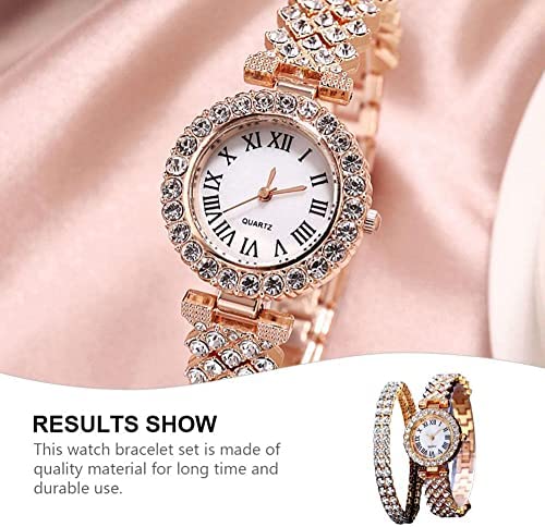The wristwatch features a precise quartz movement and is adorned with sparkling diamonds, adding a touch of glamour to your everyday look. The elegant ring is crafted with the same attention to detail, featuring a delicate band and a dazzling diamond centerpiece. The bracelet completes the set, featuring a stylish design that perfectly matches the watch and ring.