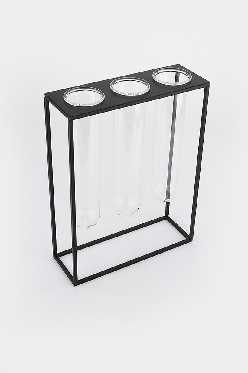 Decorative Accents, 3 pcs glass test tube with metal rack set black