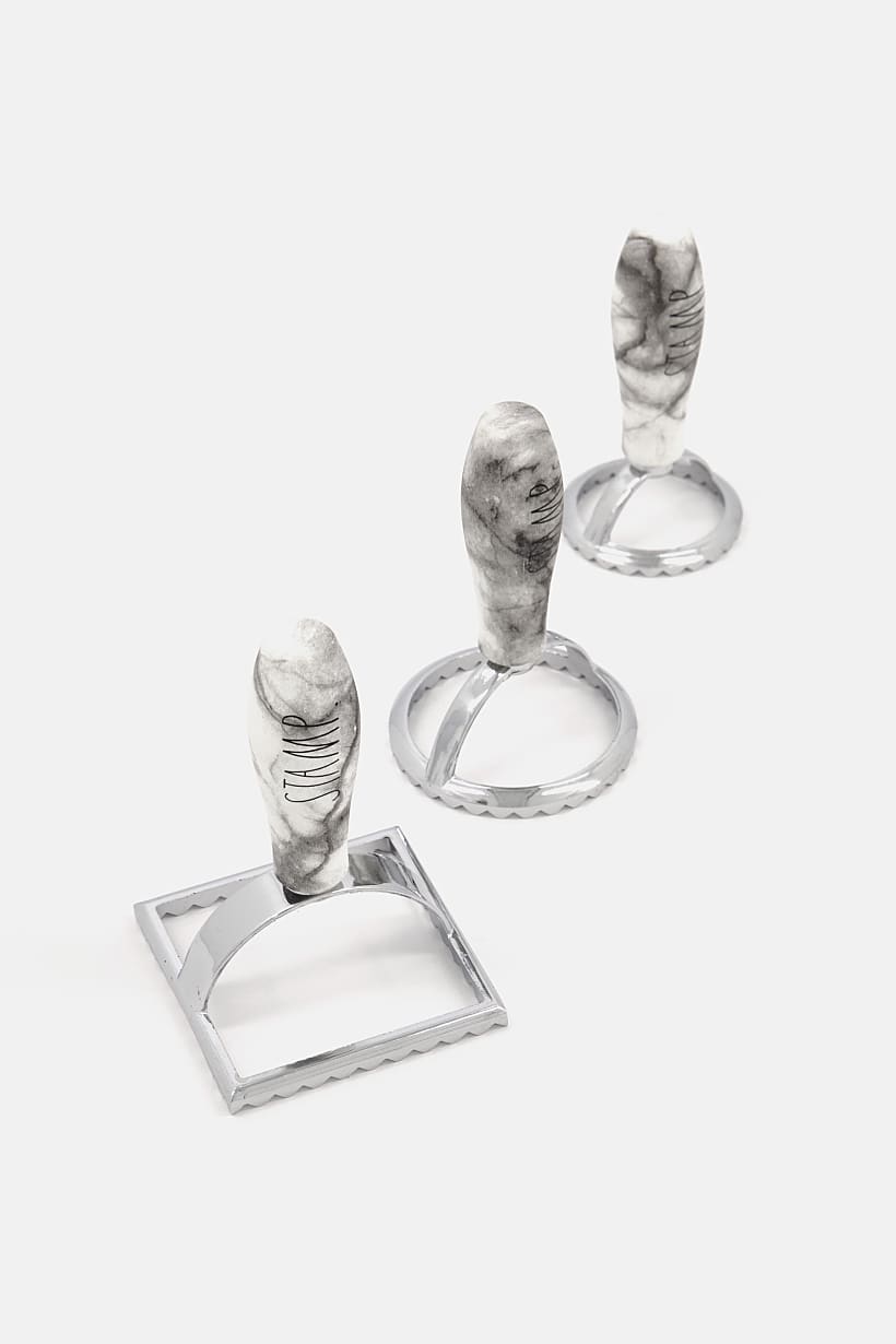 | nameOriginal | 3 Pieces Ravioli Cutter Stamp Set with Cutters Wooden Handles, White/Silver |