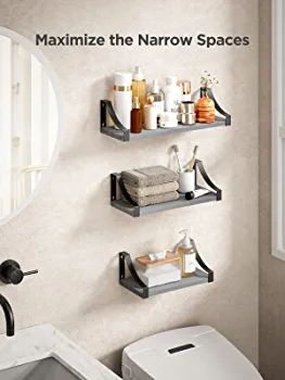 Size Does Matter: With a size of 16.4 inches, these wall shelves are wider and longer than regular shelves on the market, providing more room and worry-free storage! Large: 16.4 × 5.9 × 0.7 inches; Medium: 14 × 5.9 × 0.7 inches; Small: 11.4 × 5.9 × 0.7 inches. Easy to install within a few minutes with all necessary hardware included.