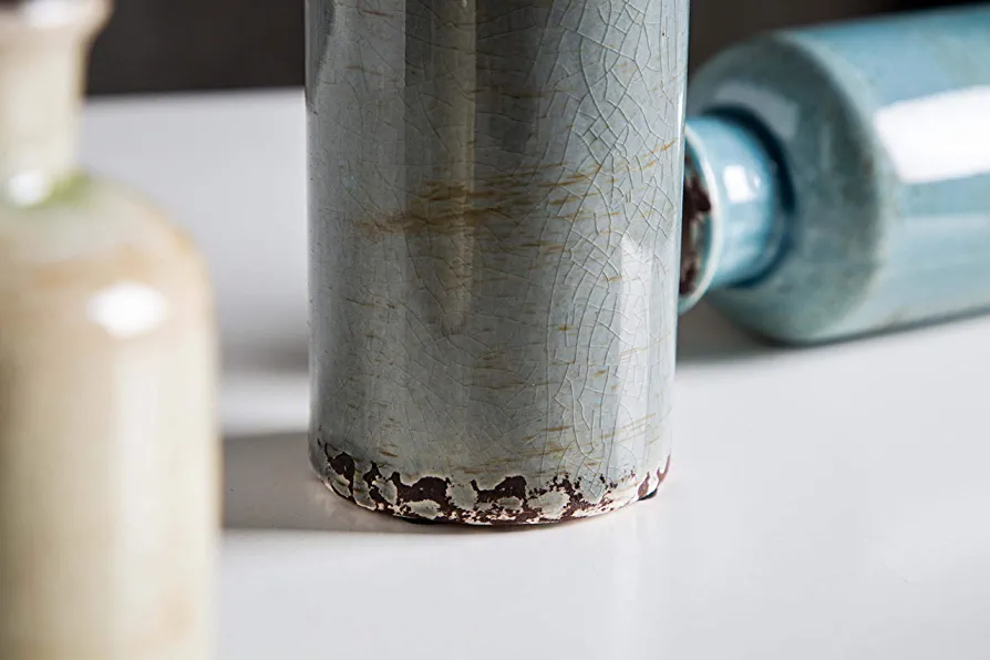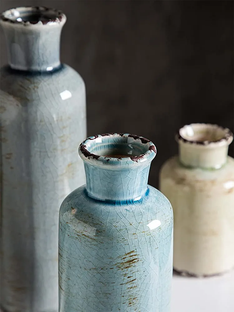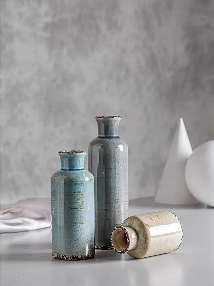 This set of decorative vases is versatile and can be used with either artificial or fresh flowers. With a variety of colors to choose from, you can easily find one that matches your style and fits in any room. These vases can be used as centerpieces, mantel decor, or table decorations, allowing you to showcase your personality and style with confidence. The distressed design adds a stunning touch, and the high-quality ceramic construction ensures that your flowers are safe and comfortable. These vases are perfect for everyday use in the office, living room, bathroom, or coffee table, and can also be used as shooting props or table centerpieces for special occasions. Please note that while these vases are suitable for dried or artificial flowers and green plants, they are not recommended for fresh flowers and water. The set includes three vases in different sizes, and there are four other colors available to suit your decorating needs.