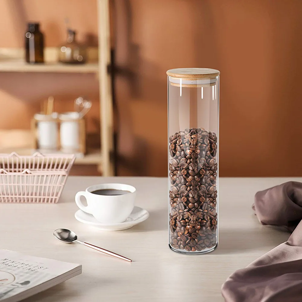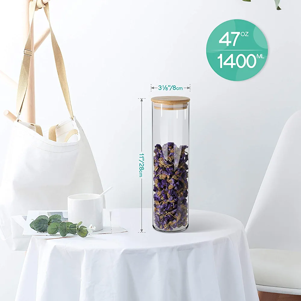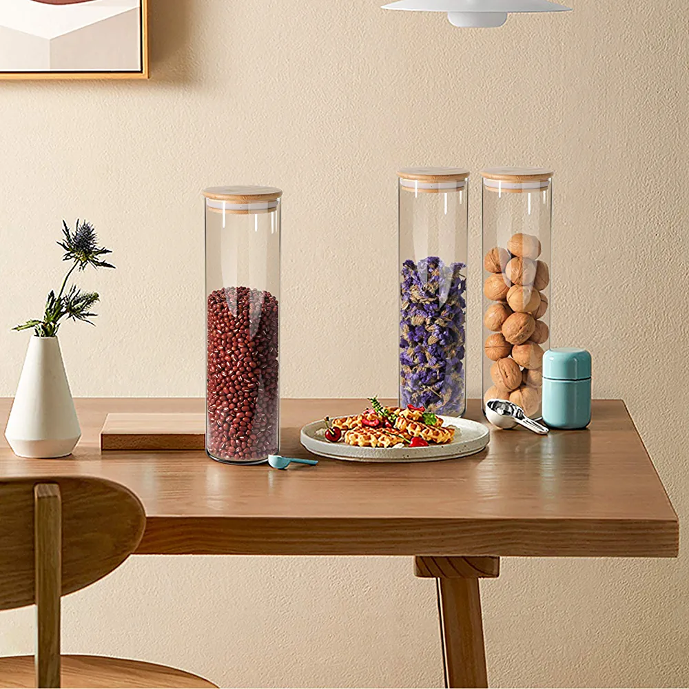 | nameOriginal | ComSaf Glass Spaghetti Pasta Storage Container for kitchen Pantry with Lids 47oz Set of 3, Tall Clear Airtight Food Storage Jar with Sealing Wood Cover for Noodles Flour Cereal Sugar Tea Coffee Beans |