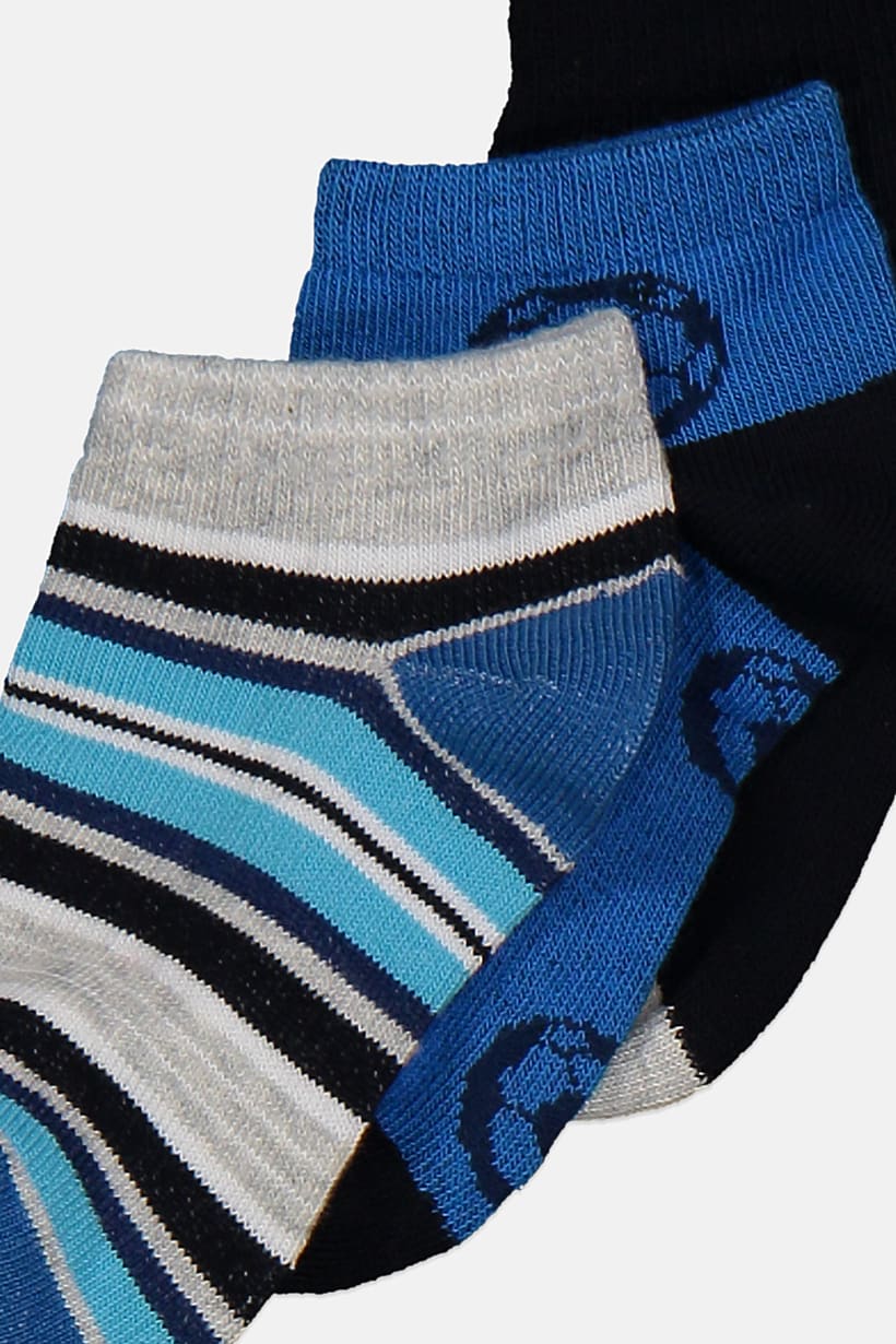 Set of 3 textured socks for boys in navy, blue, and grey.