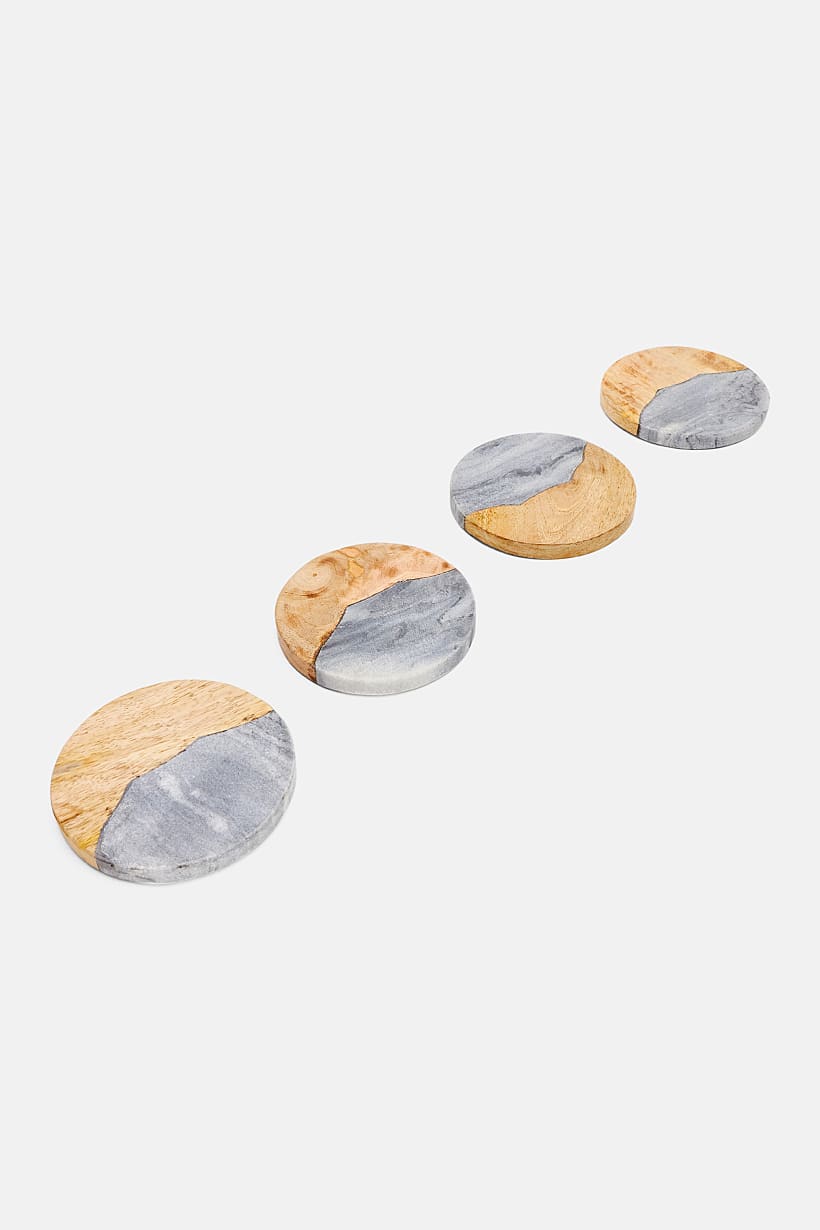 | sub_Categories | Kitchen & Dining, Kitchen Tools & Gadgets, 4 pieces round mango wood and mable coasters set grey |