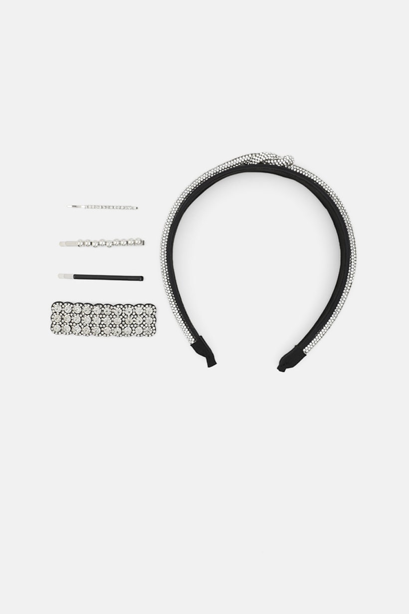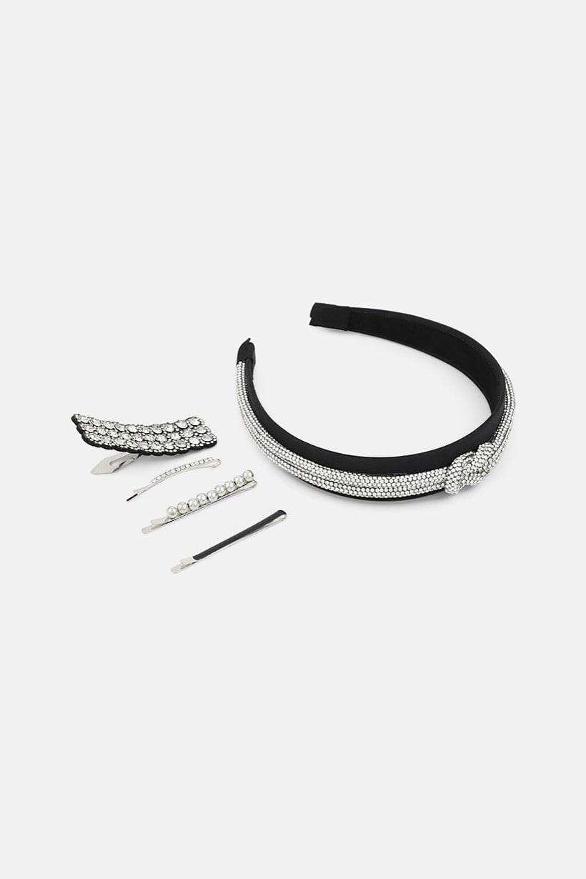 | sub_Categories | Personal Care, Hair Care, women 5 pieces shine hair accessories set silver and black |
