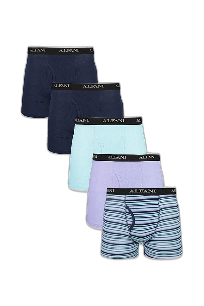 Men 5 Pcs Brand Logo Boxer Briefs, Black and Lavender Combo