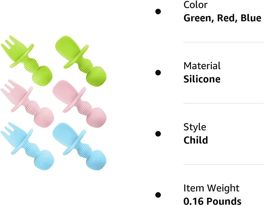 | nameOriginal | 6 Pcs Silicone Baby Spoons First Stage and Baby Fork, Toddler Utensils for Baby Led Weaning, Chewable Baby Utensils for Self-Feeding |