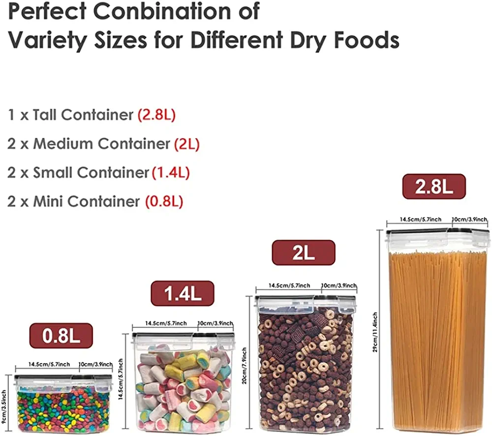 | nameOriginal | MSA.Airtight Food Storage Container Set,7 Pcs Kitchen Pantry Storage Containers with Lids Large size Kitchen & Pantry Containers Reusable Completely sealed Storage Jars for Storing Pasta,Cereal,Sugar |