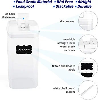 | nameOriginal | TOMVAES 7 Pack BPA Free Plastic Cereal Containers with Easy Lock Lids,Airtight Food Storage Containers,Plastic Dry Food Canisters,for Kitchen Pantry Organization and Storage |
