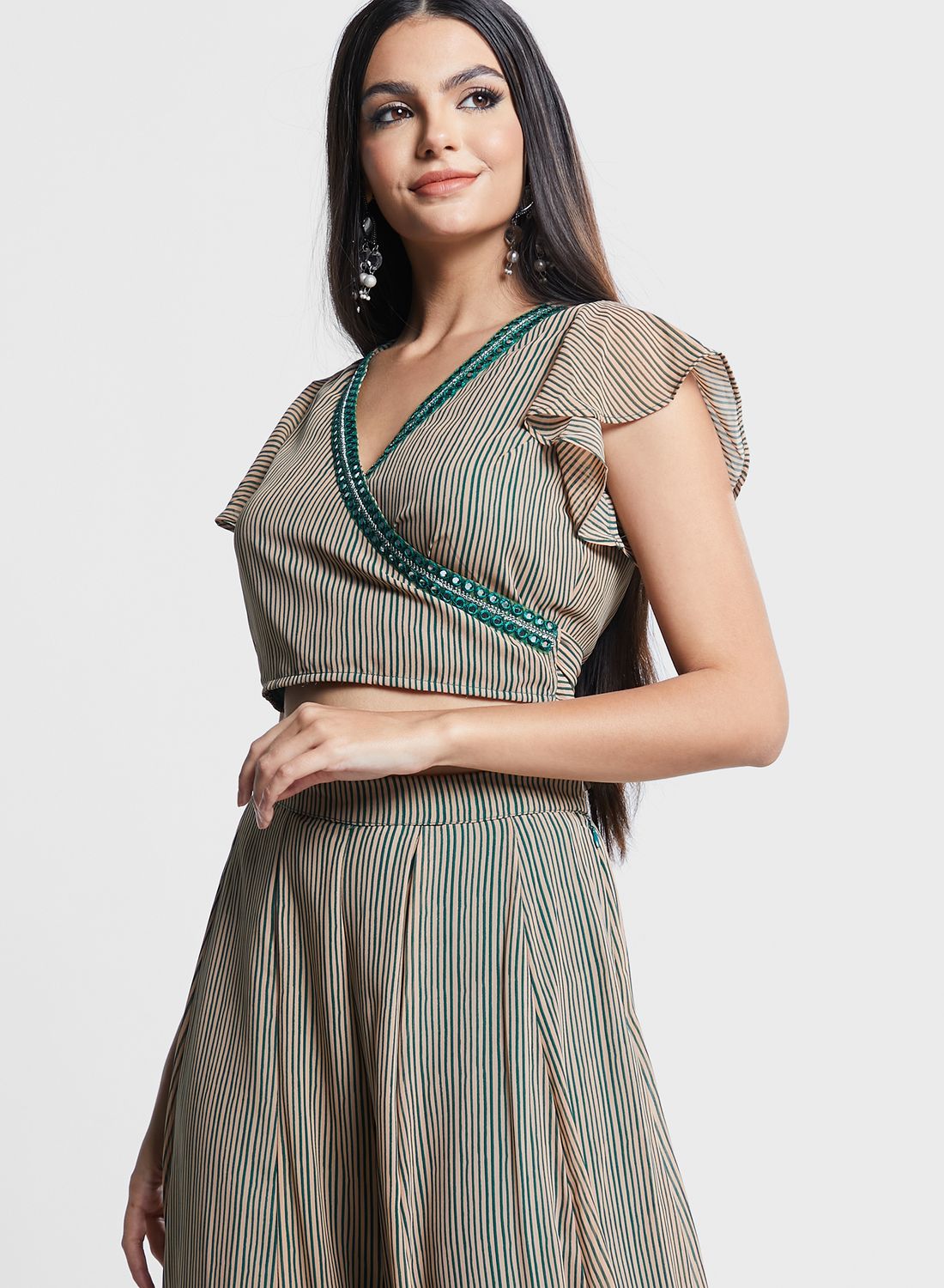 | nameOriginal | Striped Wrap Top & Palazzo Pants Set |