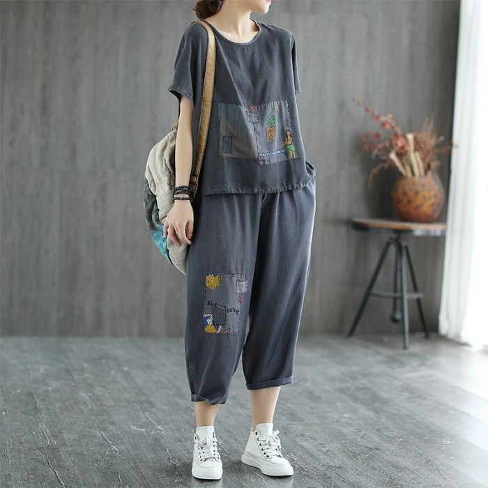 | nameOriginal | Set of retro printed short-sleeved T-shirts for mothers |