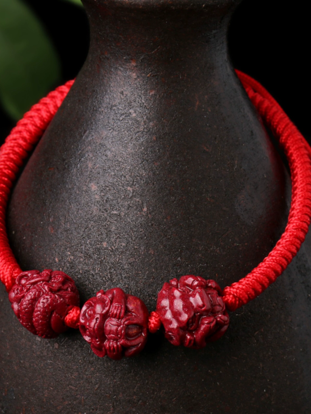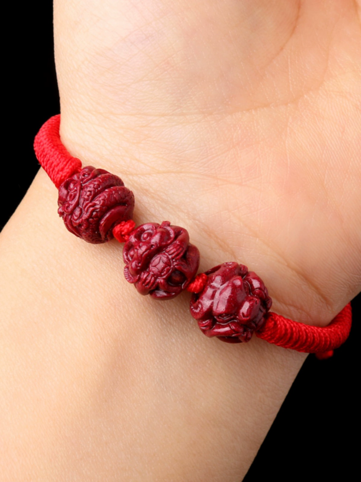 | nameOriginal | Set of three-in-one and six-in-one red hand rope bracelets with cinnabar zodiac signs: rat, ox, tiger, rabbit, dragon, snake, horse, sheep, monkey, rooster, dog, and pig. Female birth year |