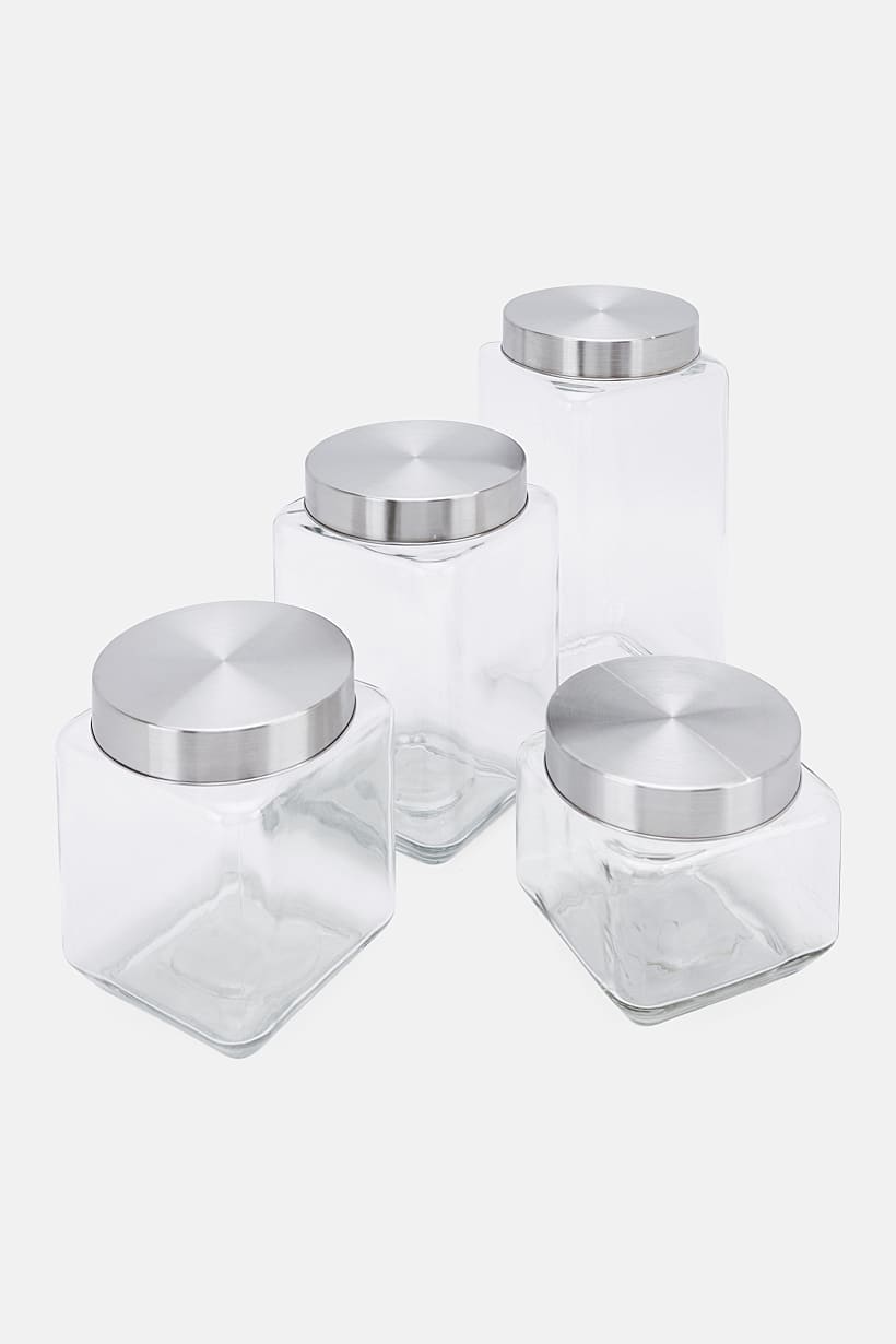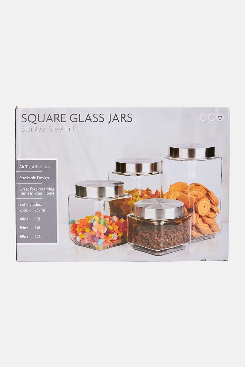 | nameOriginal | Square Glass Jars With Stainless Steel Lid Set, Transparent/Silver |